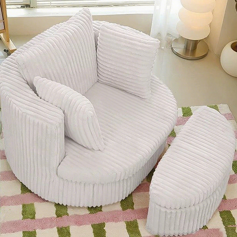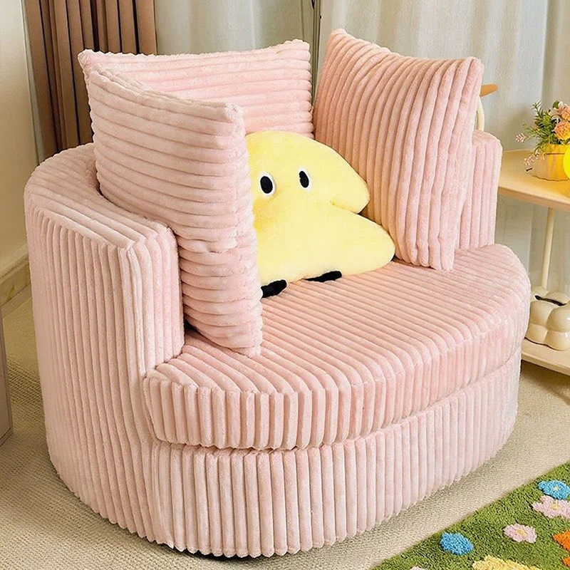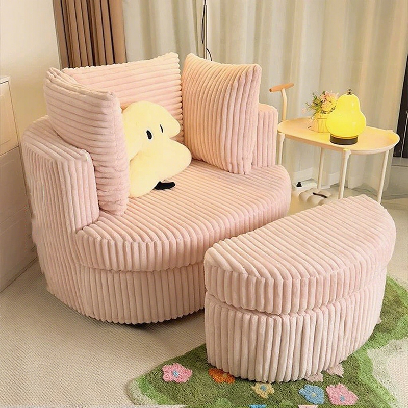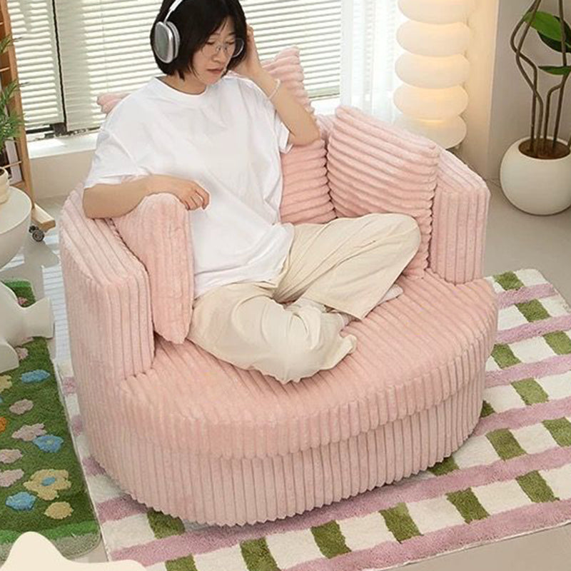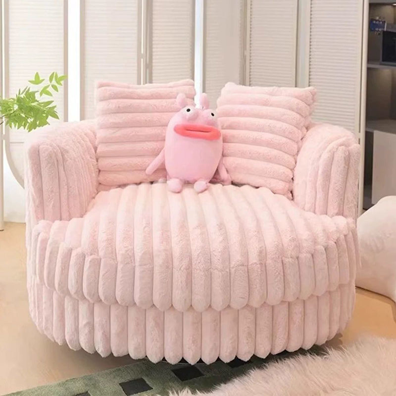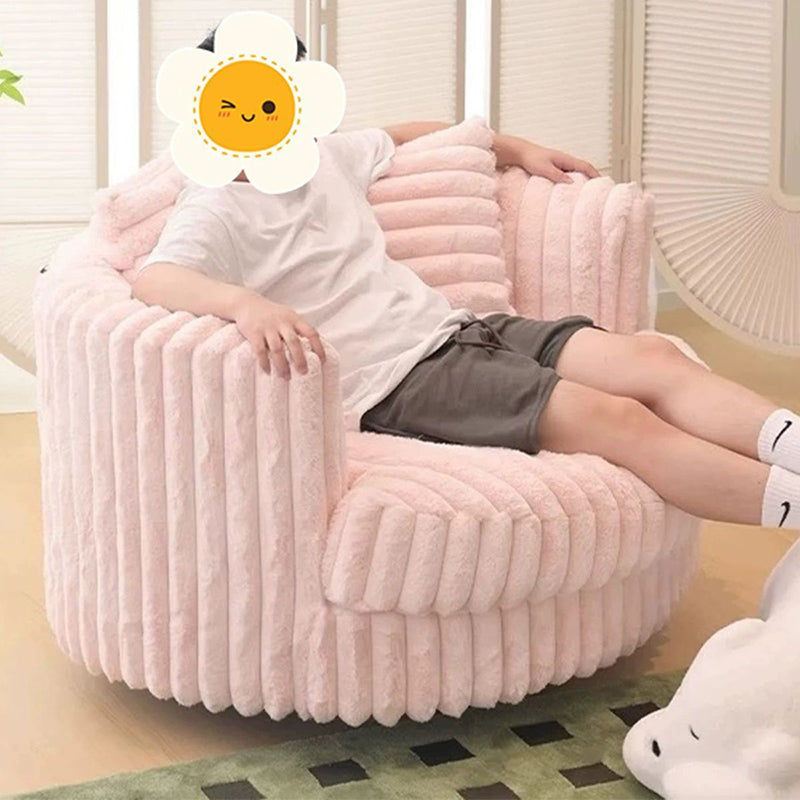 Experience cozy comfort with this modern Nordic single sofa, crafted with soft faux rabbit fur, a solid wood frame, and plush sponge filling. Designed in a smooth curved silhouette and available in sakura pink, light gray, and cream, it features a supportive backrest, armrests, and a versatile swivel base. Perfect for living rooms or bedrooms, this movable, detachable single sofa chair adds a stylish and relaxing touch to any space.