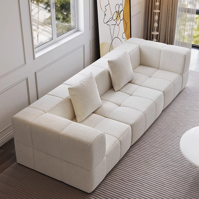 Designed with a low-profile modular silhouette, this compression sofa features clean geometric blocks softened by rounded edges, creating a modern yet inviting presence.
