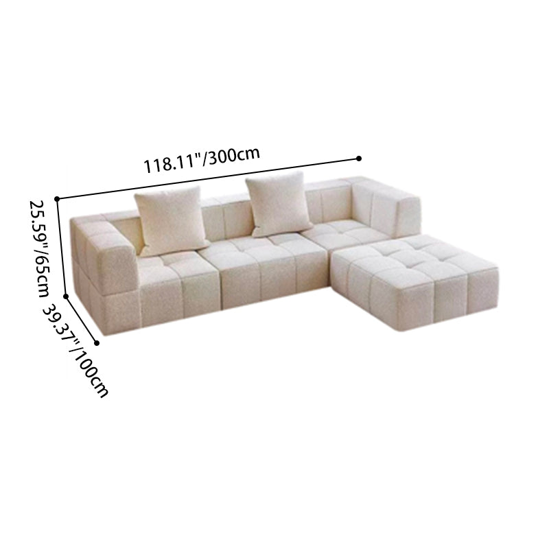 The wide seat cushions and relaxed backrest provide generous lounging space, while the modular ottoman allows flexible configurations for different living needs.