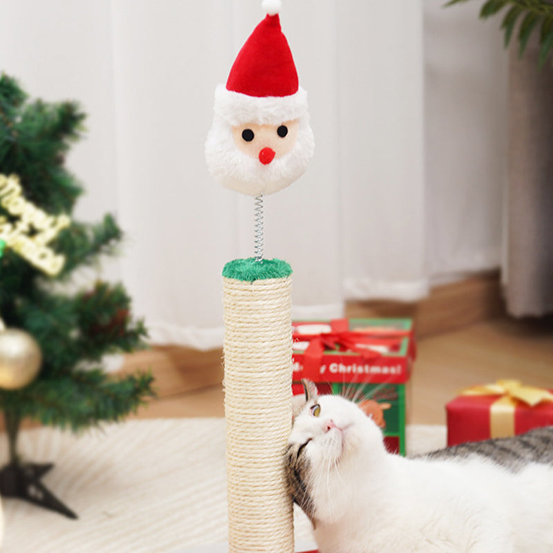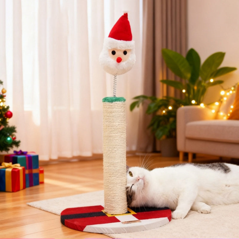 Capture the joyful spirit of the holidays while satisfying your cat's natural instincts with this festive Christmas-themed cat scratching post. This vertical tower is built for durability and stability, utilizing a sturdy MDF core and wrapping the post entirely in robust natural sisal, which provides an ideal, long-lasting surface for sharpening claws. The design features a playful candy-cane and Santa-inspired round silhouette, instantly becoming a charming, cheerful accent piece.