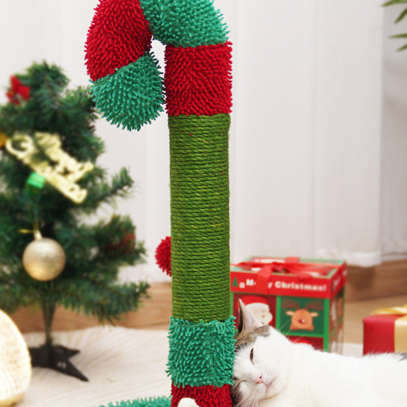 This scratcher combines essential pet utility with seasonal style, making it the perfect addition to your holiday décor. Finished in vibrant green, red, and white plush fabric, it adds a festive touch while offering a sturdy post that helps protect your furniture. Its compact footprint makes it ideal for small spaces like apartments or cozy corners in your living room or bedroom. Optimized for North American consumers searching for Christmas cat scratchers, candy-cane pet furniture, sisal scratching posts for small spaces, and festive red and green cat enrichment.
