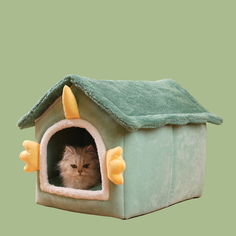 Modern Art Deco House-Shaped Flannelette Drop-Molded Fabric Detachable Cat Beds 1-Tier For Living Room