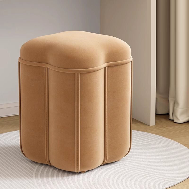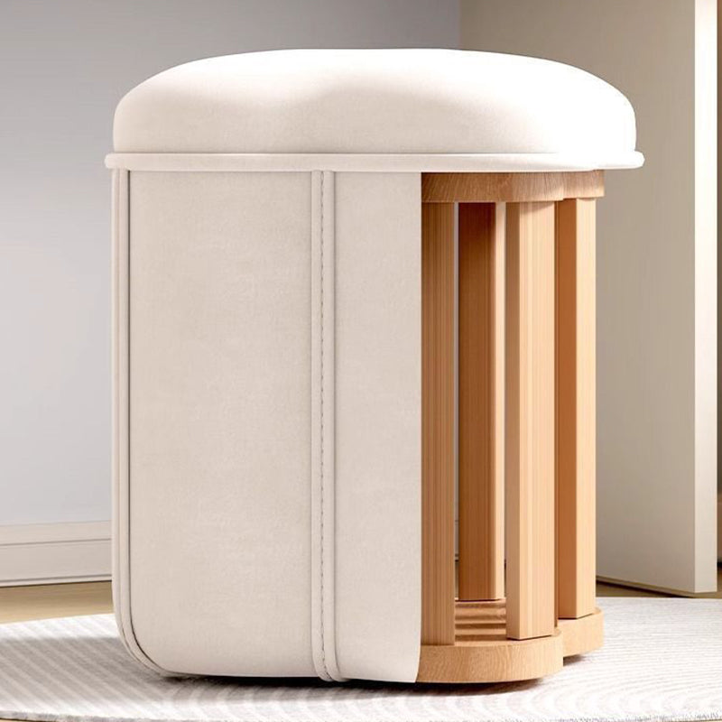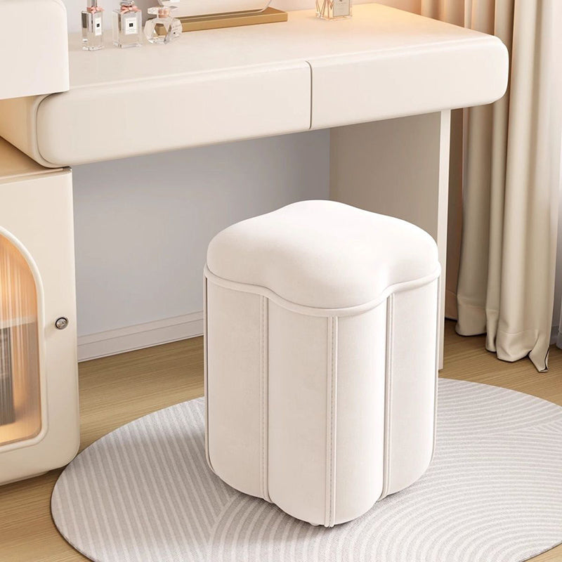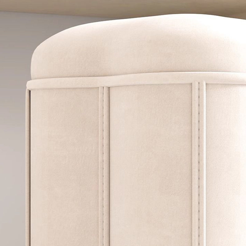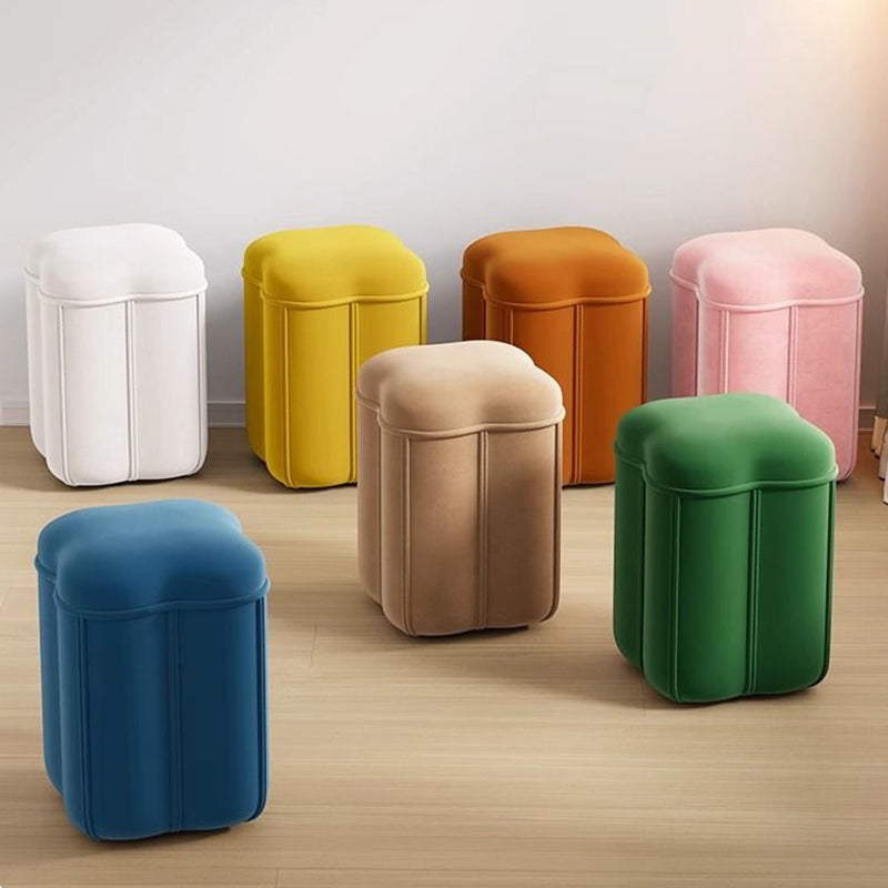This modern minimalist makeup stool features a cylindrical velvet design with a solid wood structure and high-resilience sponge for a comfortable sitting experience. Built with strong load-bearing support and a hidden storage compartment, it’s available in a wide range of colors—including beige, deep pink, khaki, orange-red, ginger yellow, sky blue, green, light pink, light gray, and black—to complement any bedroom décor.
