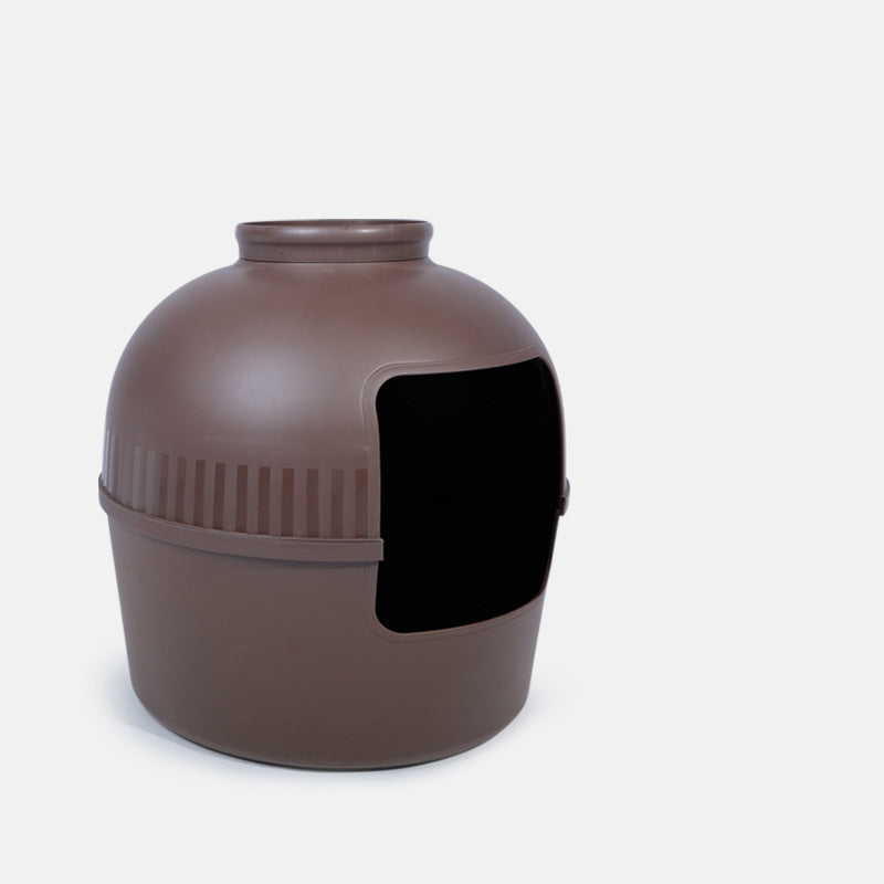 Treat your cat or small dog (like Teddy) to this Modern Minimalist wine barrel-shaped bed, made of durable PP plastic and resin in white and brown. This 1-tier pet bed is sturdy, detachable for easy handling, and washable for hassle-free cleaning—ideal for cozy rests in the living room or bedroom.