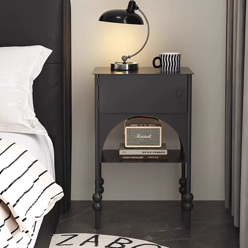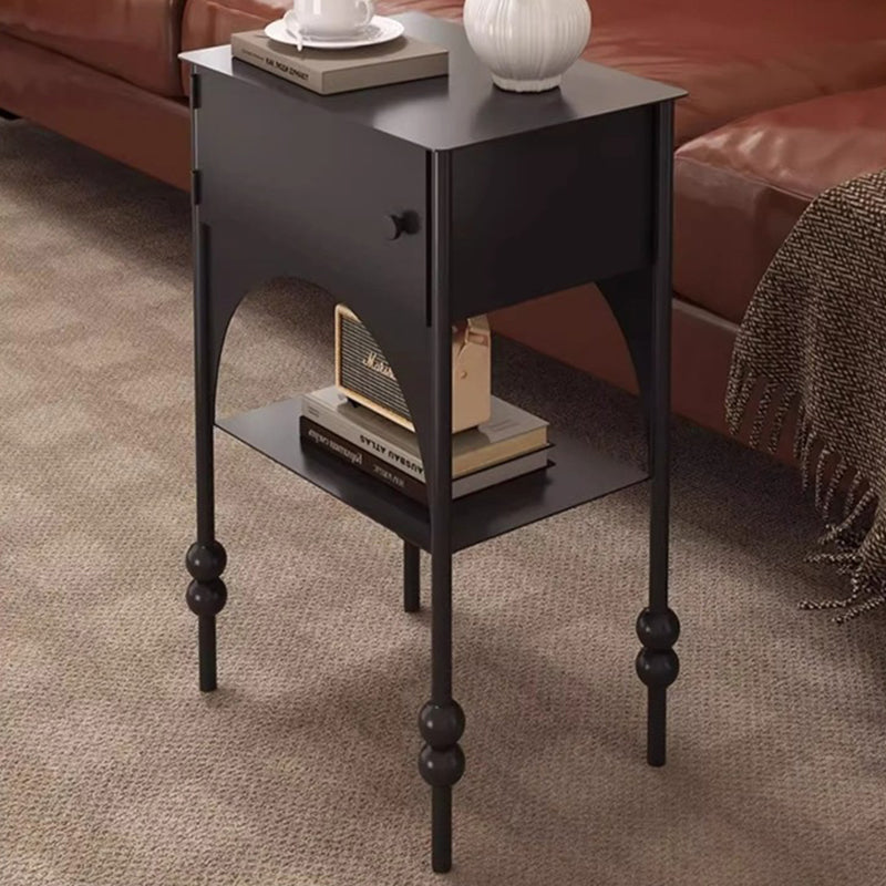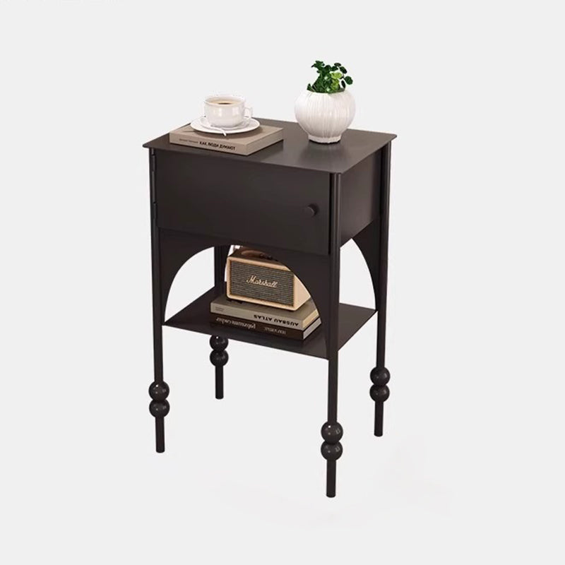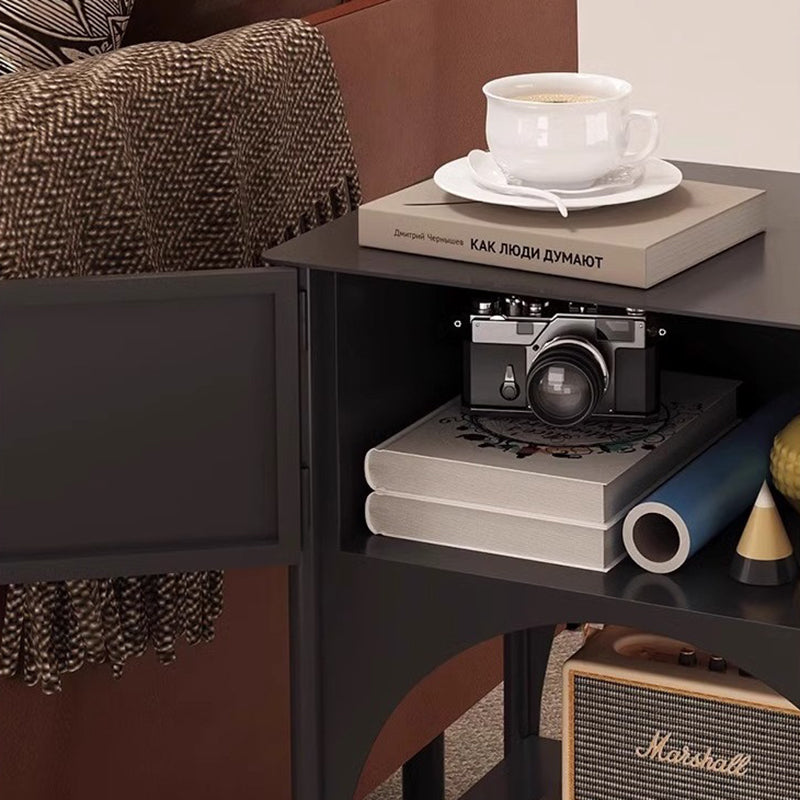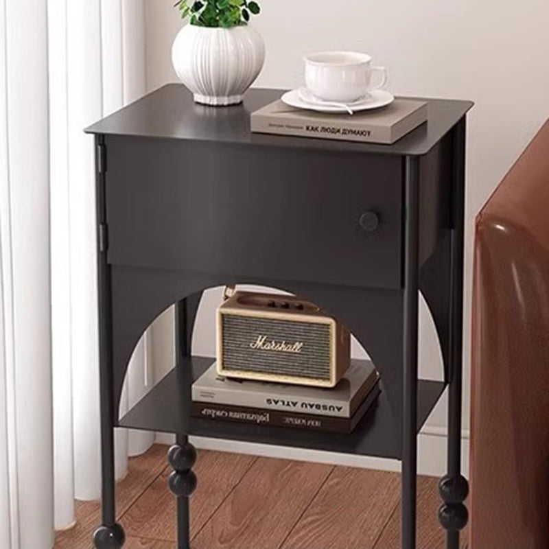 This modern minimalist iron nightstand features a sturdy rectangular design with one enclosed cabinet and a 2-tier open shelf, offering strong load-bearing performance and elevated structure for cleaner, easier bedroom organization. Available in black or white, it provides practical storage and display space, making it a sleek and durable bedside solution for contemporary interiors.