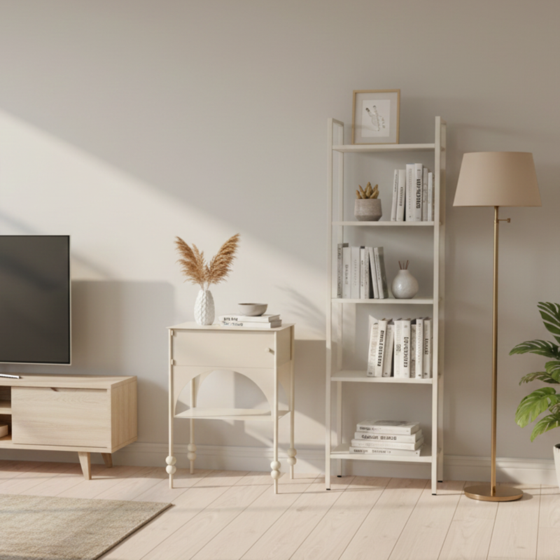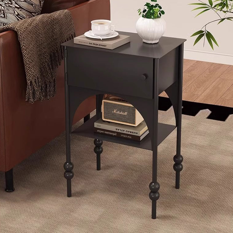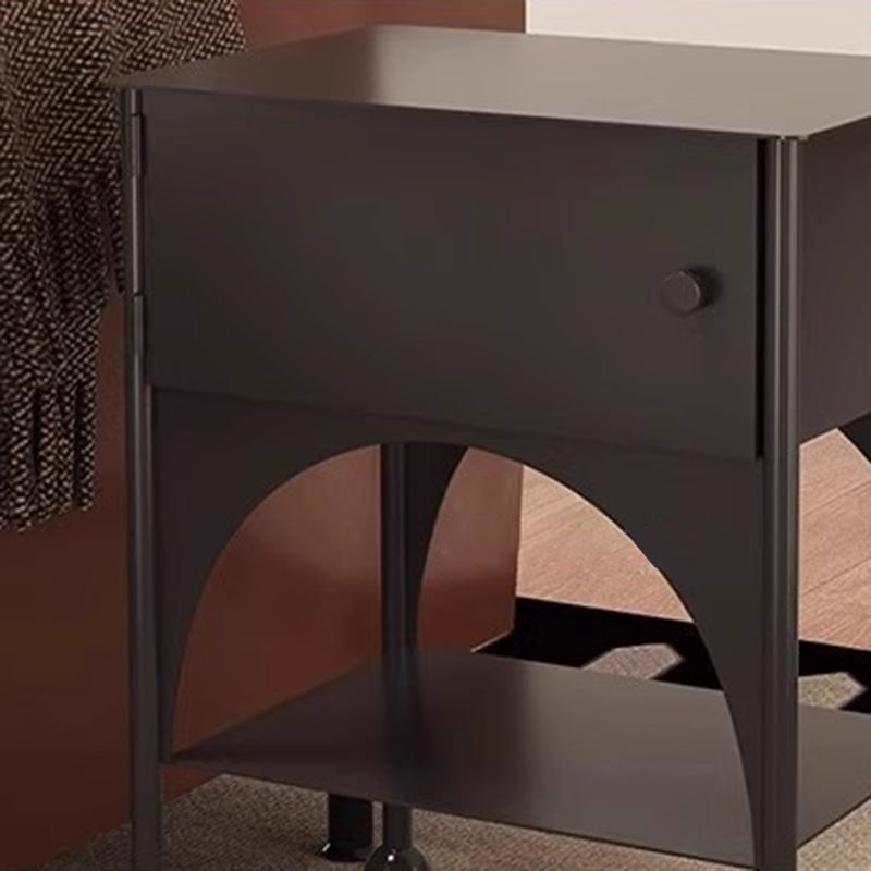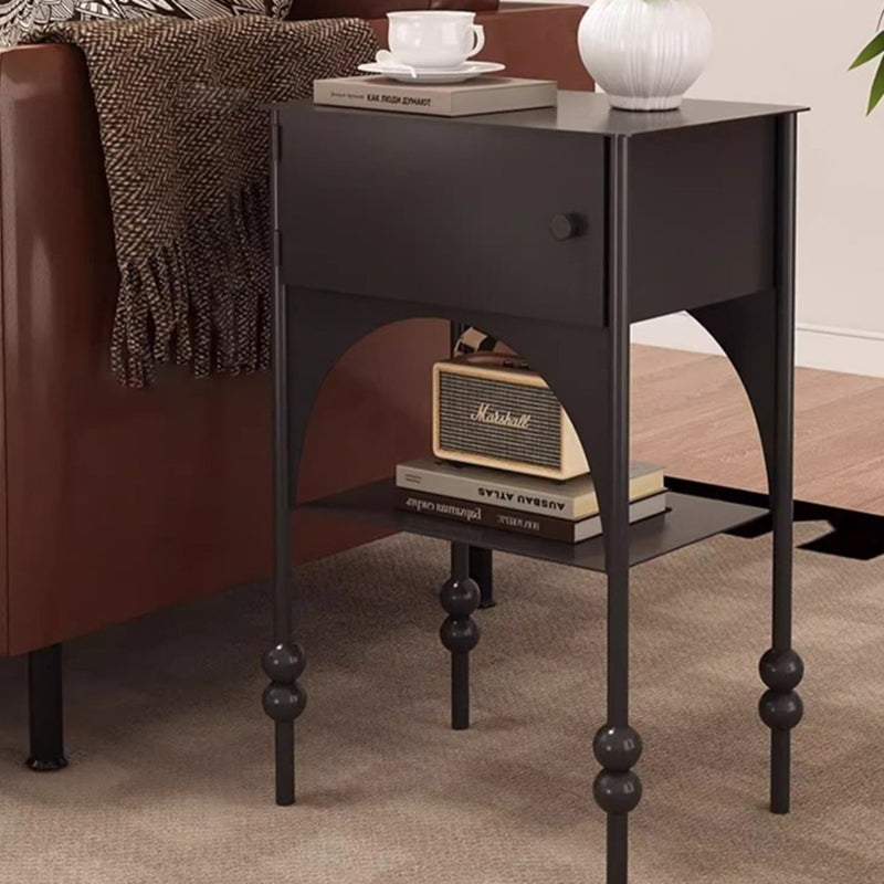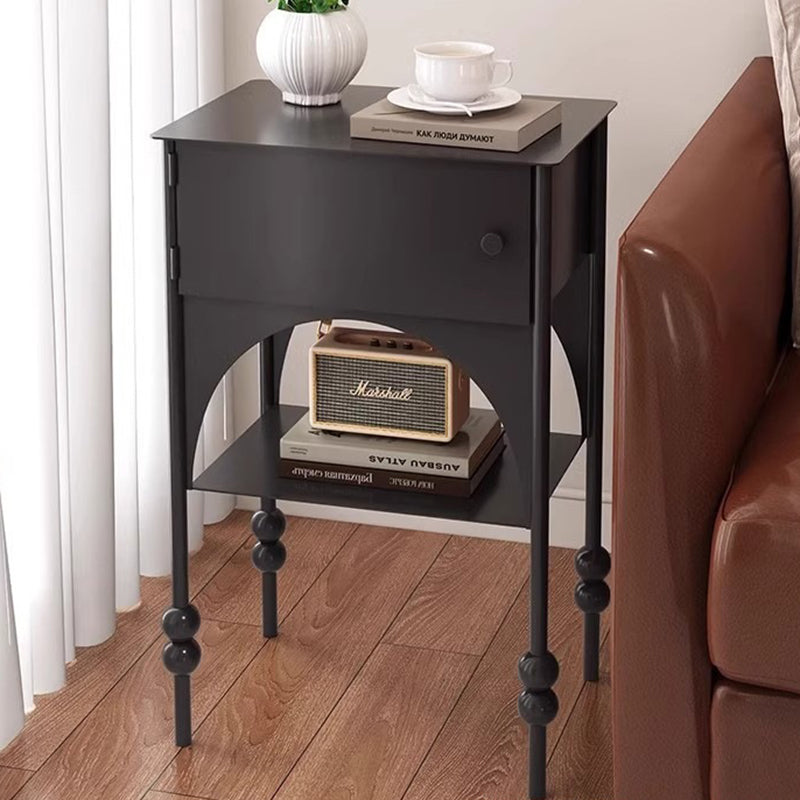 This modern minimalist iron nightstand features a sturdy rectangular design with one enclosed cabinet and a 2-tier open shelf, offering strong load-bearing performance and elevated structure for cleaner, easier bedroom organization. Available in black or white, it provides practical storage and display space, making it a sleek and durable bedside solution for contemporary interiors.