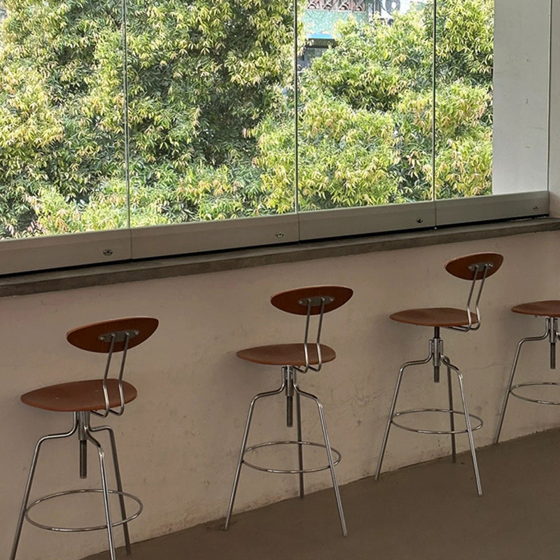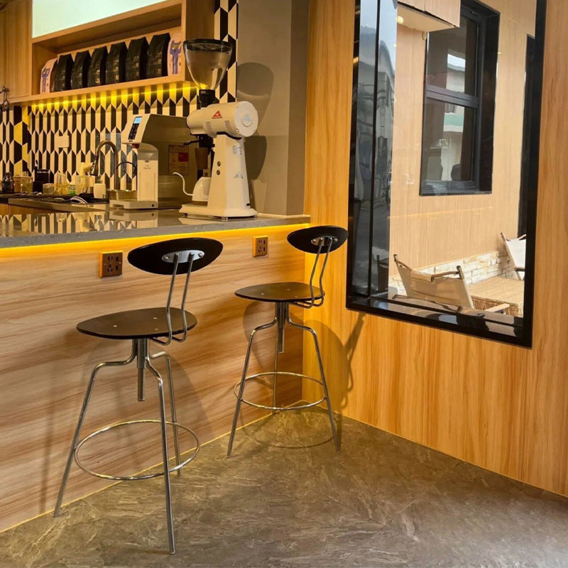 This Modern Minimalist bar stool features clean lines and a refined structure that seamlessly complements contemporary interiors. The seat and backrest are crafted from multi-layer solid wood with white oak veneer and a smooth painted finish, offering natural texture, durability, and easy maintenance. The iron frame, enhanced with stainless steel screws and a stable height-adjustment knob, ensures strong support and long-lasting stability without wobbling. All materials are eco-friendly, odor-free, and safe for everyday use. Designed with a rectangular seat shape, the stool features adjustable height and swivel, providing flexible comfort for kitchen counters, bar areas, and modern café settings. Simple yet stylish, it brings a clean, modern atmosphere to any space.