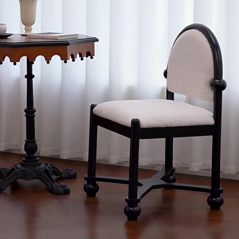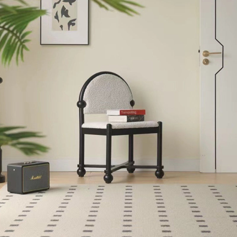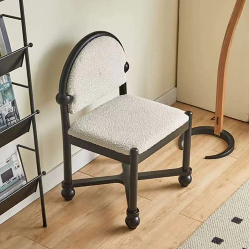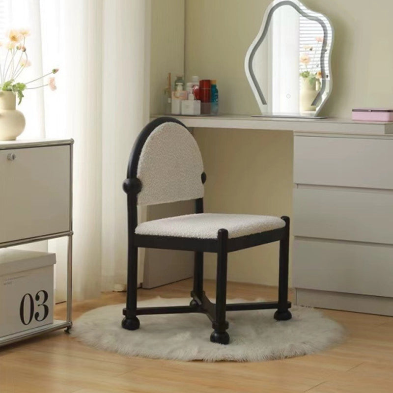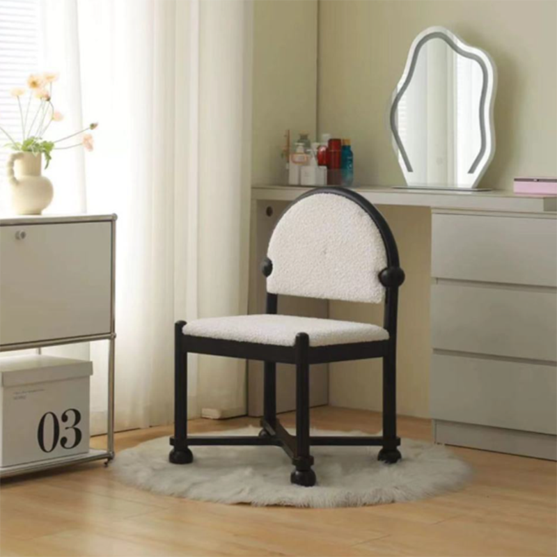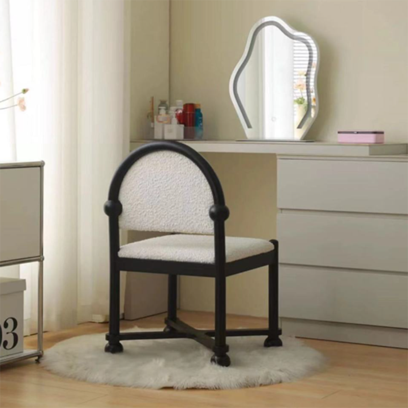 This exquisite modern minimalist vanity chair offers the ultimate upgrade for your dressing area, seamlessly combining high style with unparalleled comfort. The design centers around a thick, cozy shearling cushion and a supportive backrest, ensuring relaxation during your daily routine. Grounded by a high-quality solid-wood base—available in classic black—its clean, rectangular silhouette brings a refined, airy aesthetic to your bedroom. More than just a stool, this is a functional and exceptionally chic accent piece.
