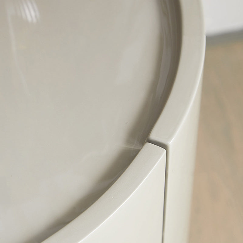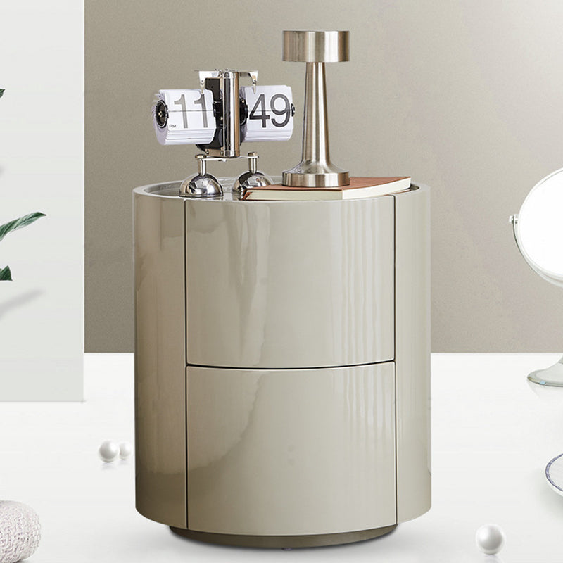 Modern Minimalist Round Solid Wood Plywood Wrought Iron Nightstand With 2-Drawer For Bedroom