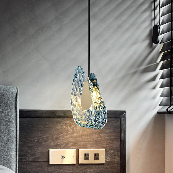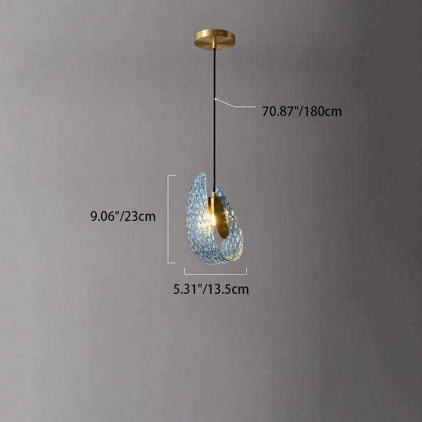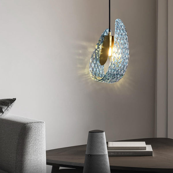 قلادة فاخرة معاصرة من الزجاج المنحني المزخرف والنحاس بإضاءة واحدة لغرفة المعيشة