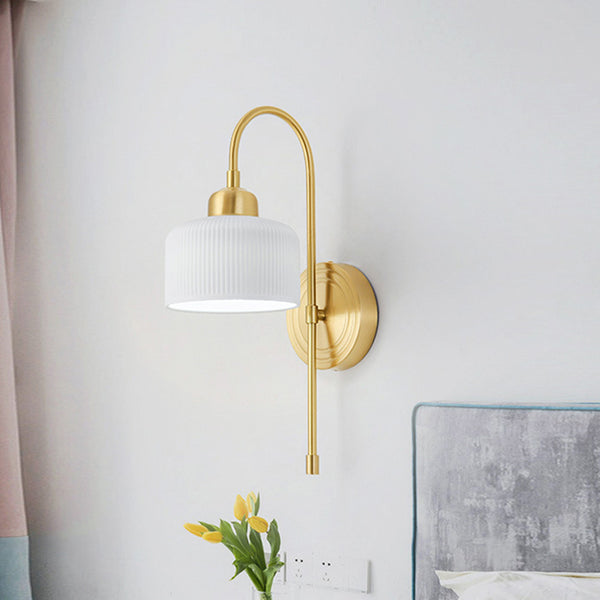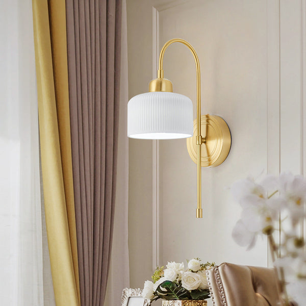 مصباح حائط معاصر فاخر من السيراميك مضلع أسطواني نحاسي عتيق بضوء واحد لغرفة المعيشة