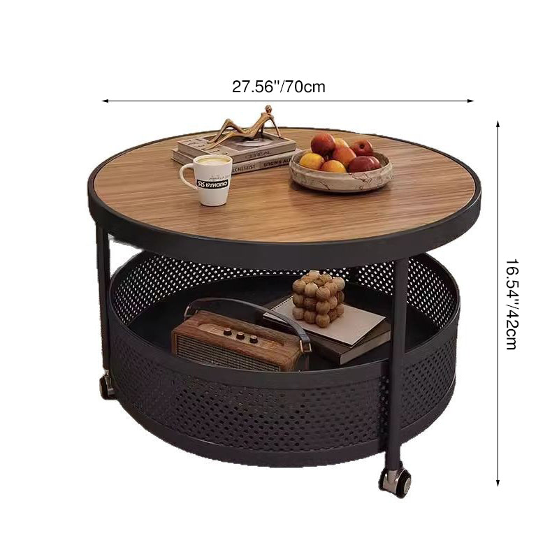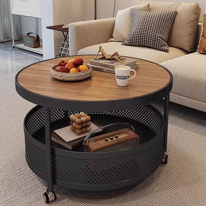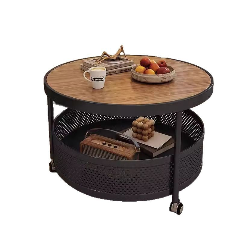 This contemporary Scandinavian round side table features a movable double-tier design made of durable metal and engineered wood. Available in black, white, or walnut finishes, it showcases a high-temperature baked lacquer surface for superior stability and load-bearing performance—perfect for modern living rooms.