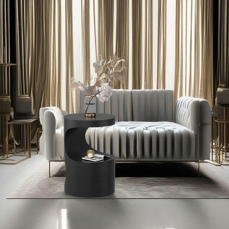 Contemporary Scandinavian Round Carbon Steel Side Table 2-Tier For Living Room