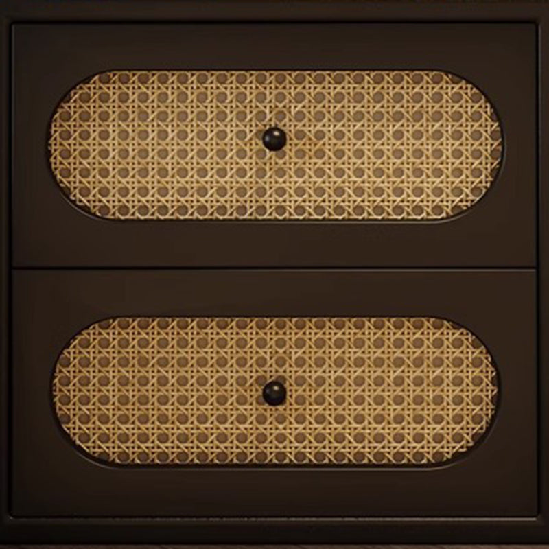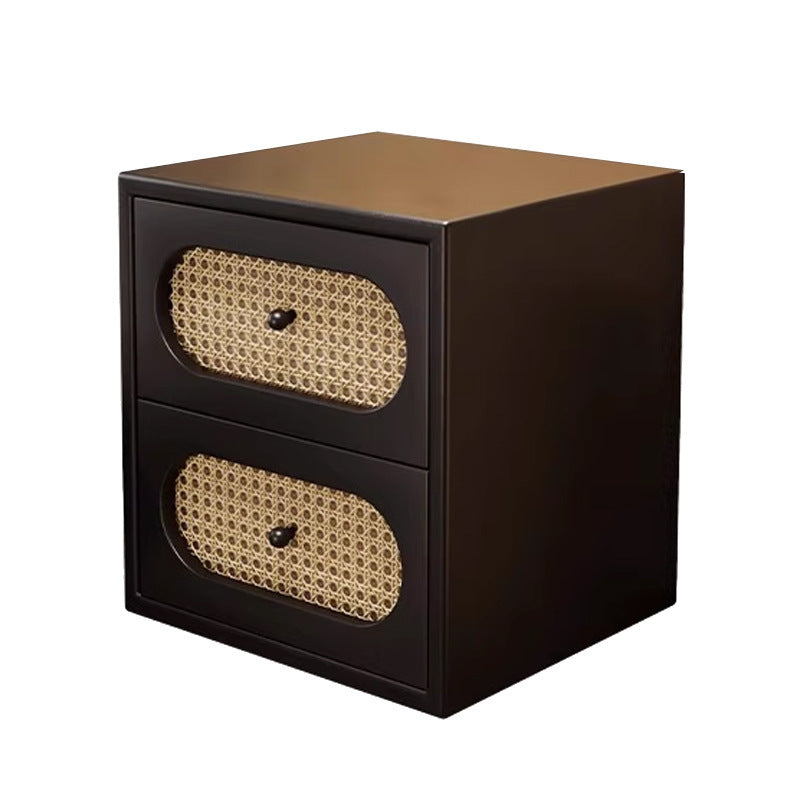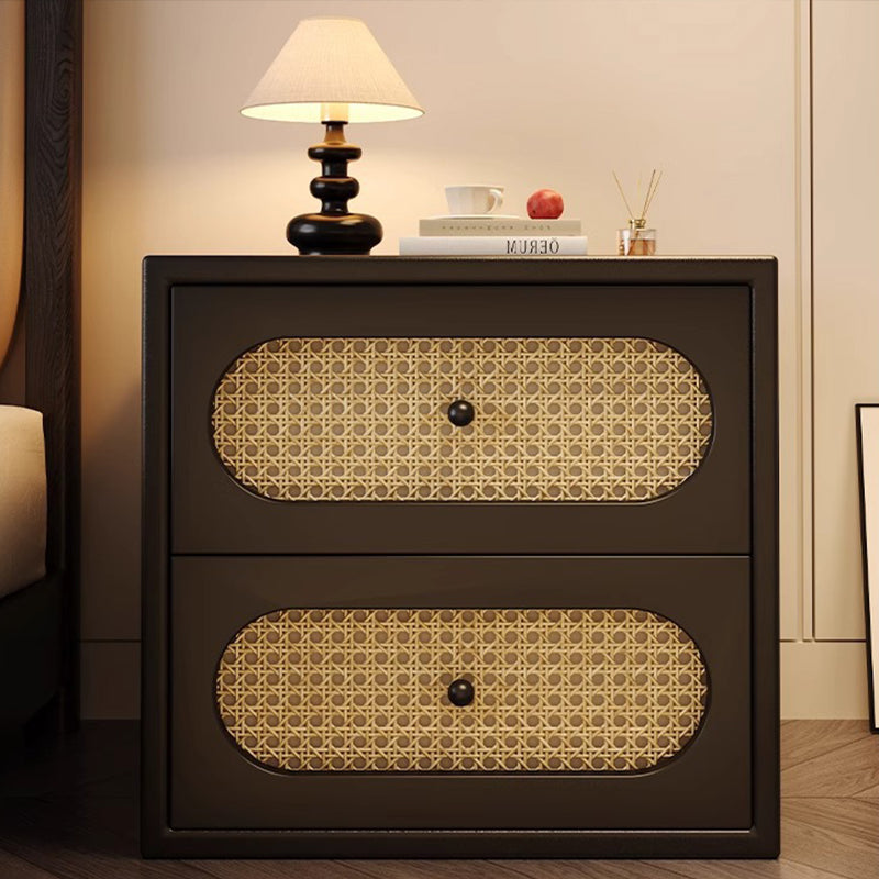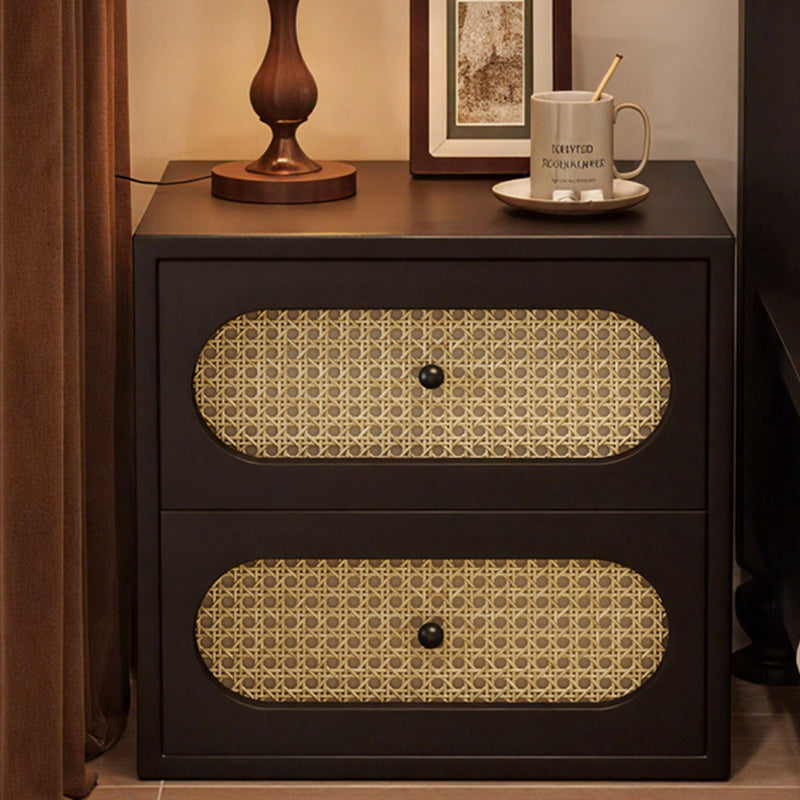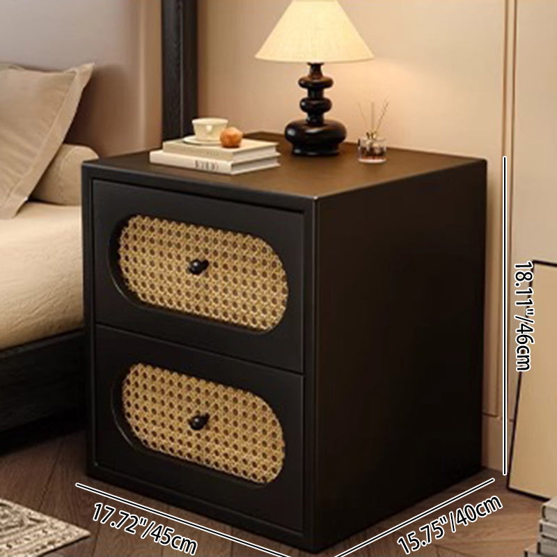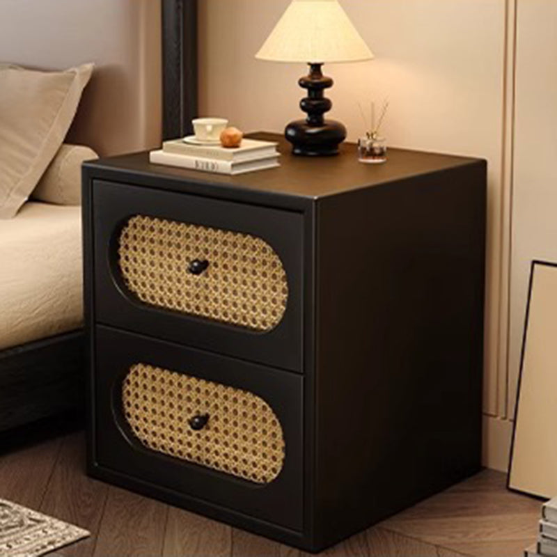 طاولة سرير جانبية ذات درجين لغرفة النوم مصنوعة من الجلد الميكروفايبر الياباني التقليدي مربع الشكل والمستطيل من خشب MDF والخشب الصلب والخشب الرقائقي وPVC ونسج الخيزران