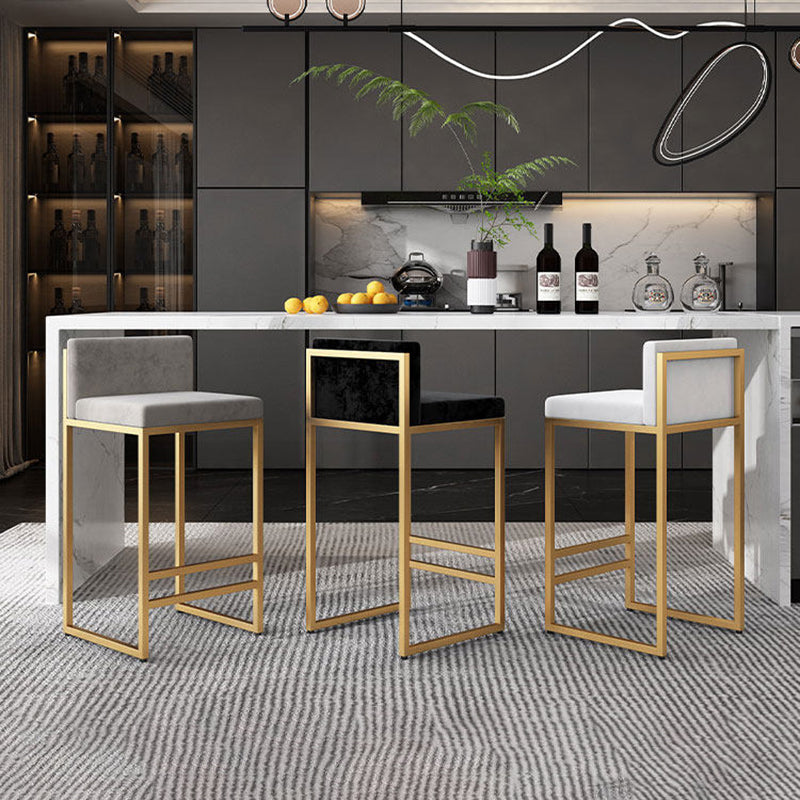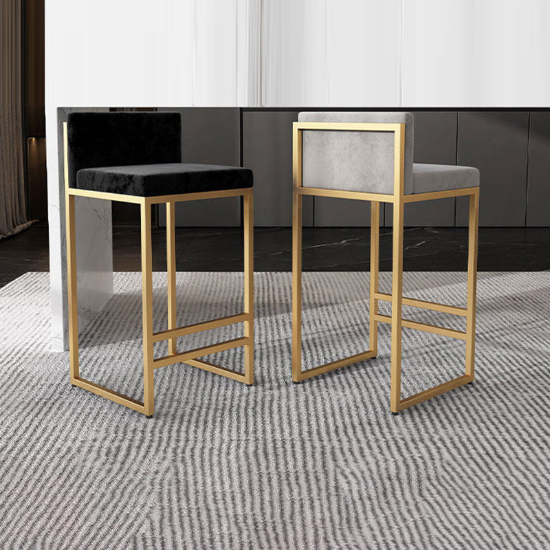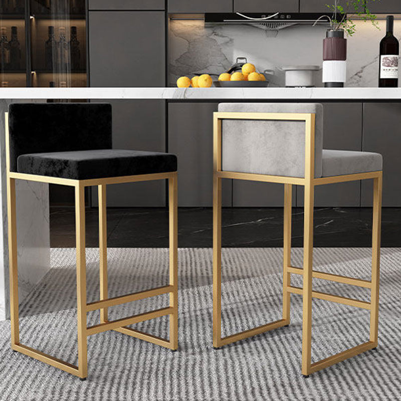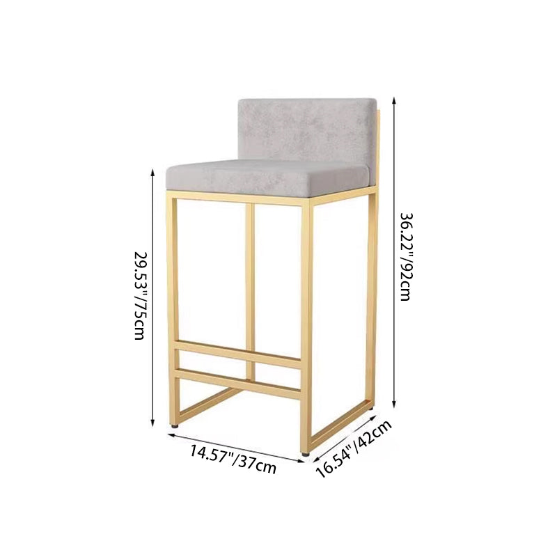 Elevate your home dining experience with this modern minimalist bar stool, where sleek design meets exceptional comfort. Crafted with a sturdy iron frame, the stool features a plush velvet seat generously padded with high-density foam to provide lasting support for long evenings of conversation. The thoughtfully designed backrest offers ergonomic comfort, while the armless silhouette allows for a streamlined look that tucks neatly under counters. Available in a sophisticated palette of gold, black, white, and gray, it serves as a stylish and functional centerpiece for any kitchen island or dining area.