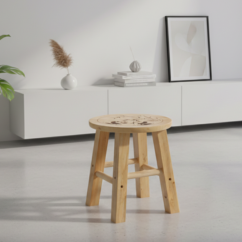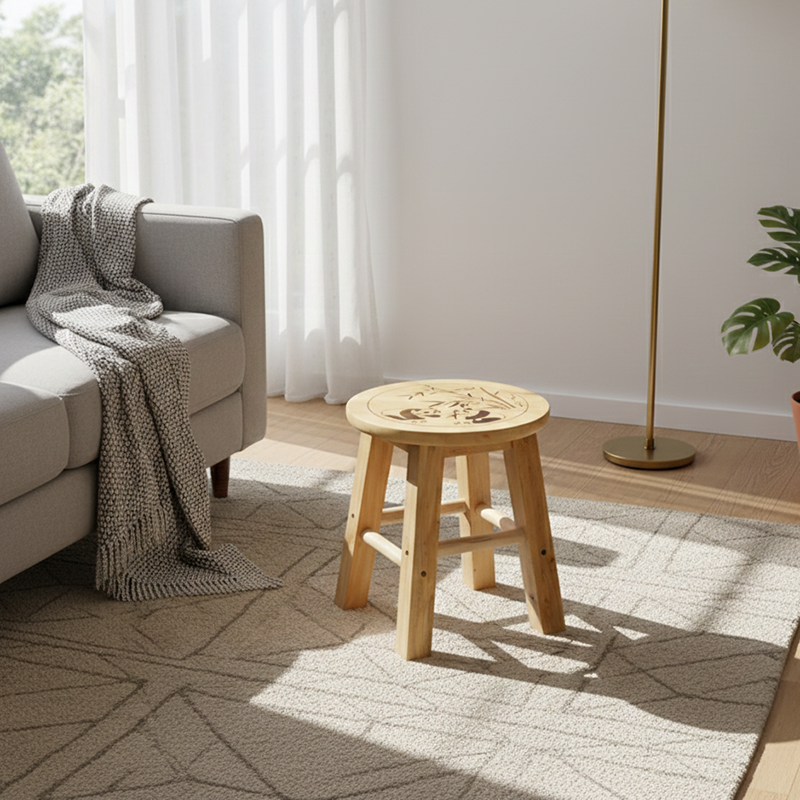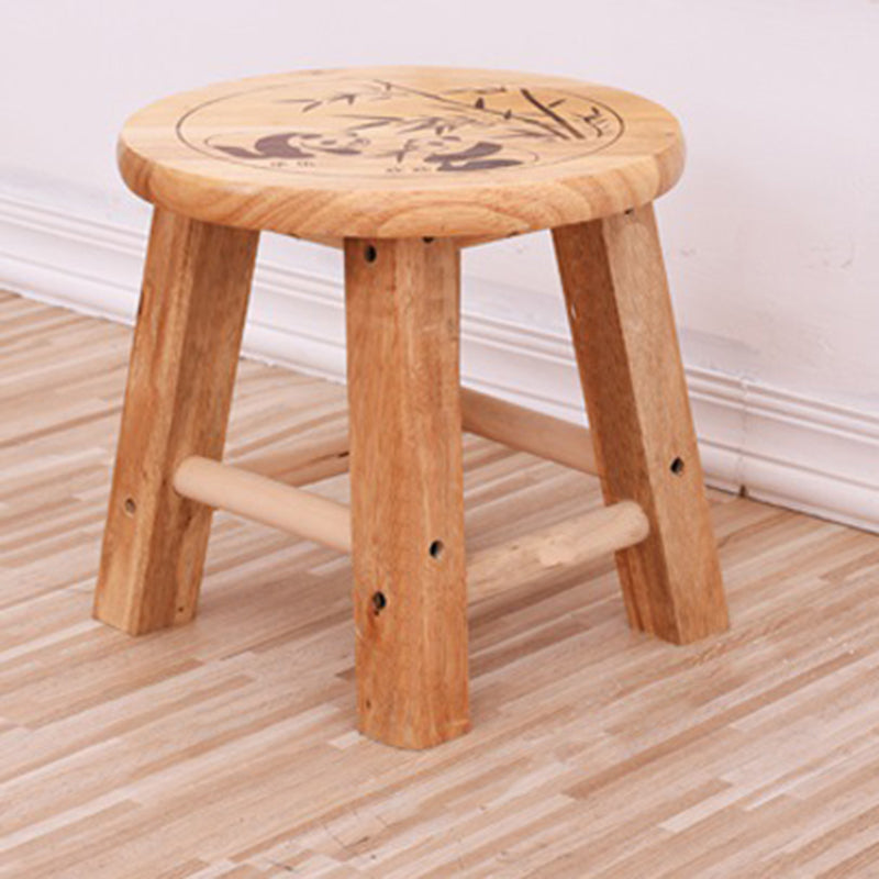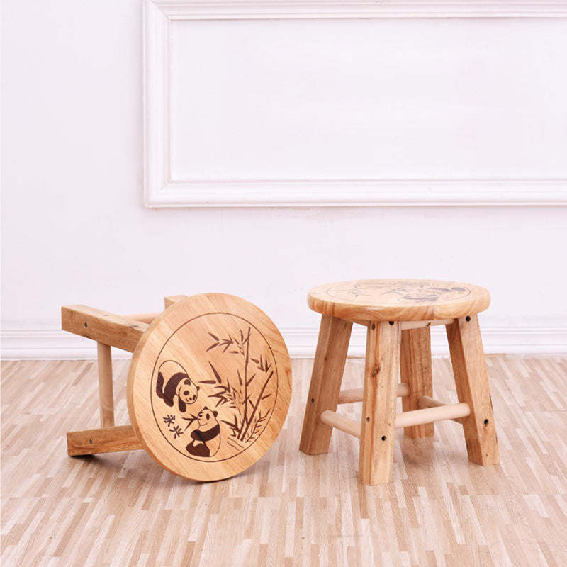 This Traditional Chinese round low stool is made from solid wood and finished in a natural wood color, offering a sturdy and durable seating option for the living room, bedroom, or entryway. The fully solid construction and smoothly polished legs enhance safety and comfort, making it ideal as a shoe-changing stool or compact accent seat.