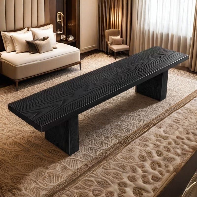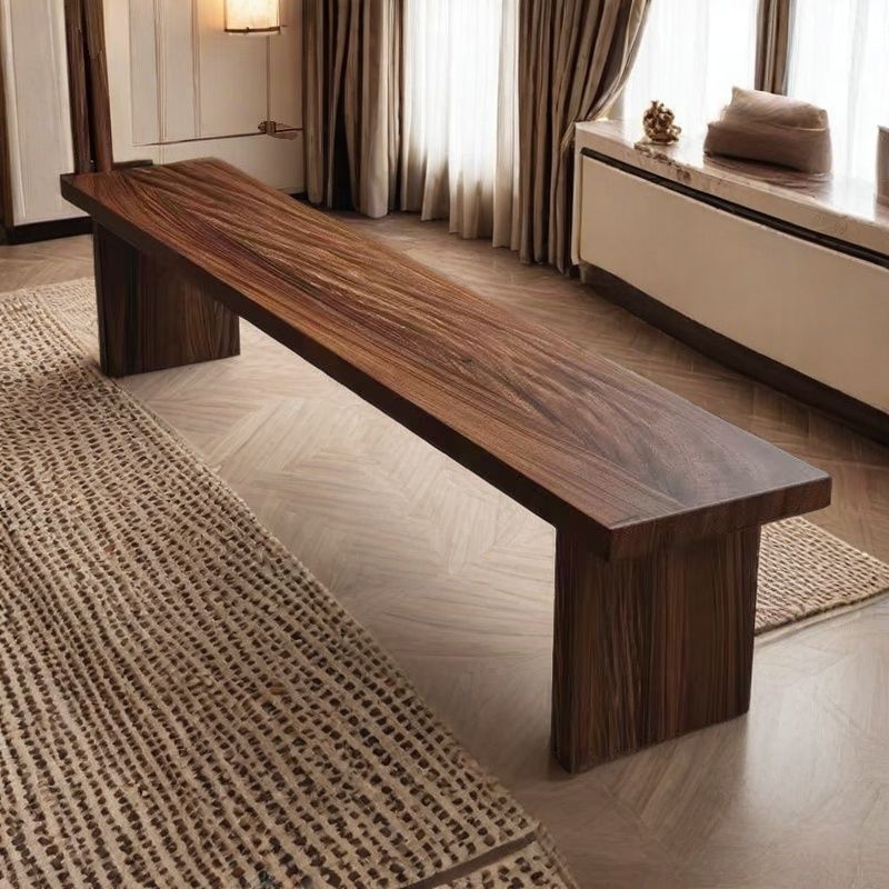 This Traditional Chinese pine wood shoe bench features a clean rectangular silhouette with a walnut and black finish, showcasing clear natural wood grain. Built for stability and everyday use, it offers a solid, wobble-free structure, making it ideal for entryways, living rooms, or bedroom bench seating.