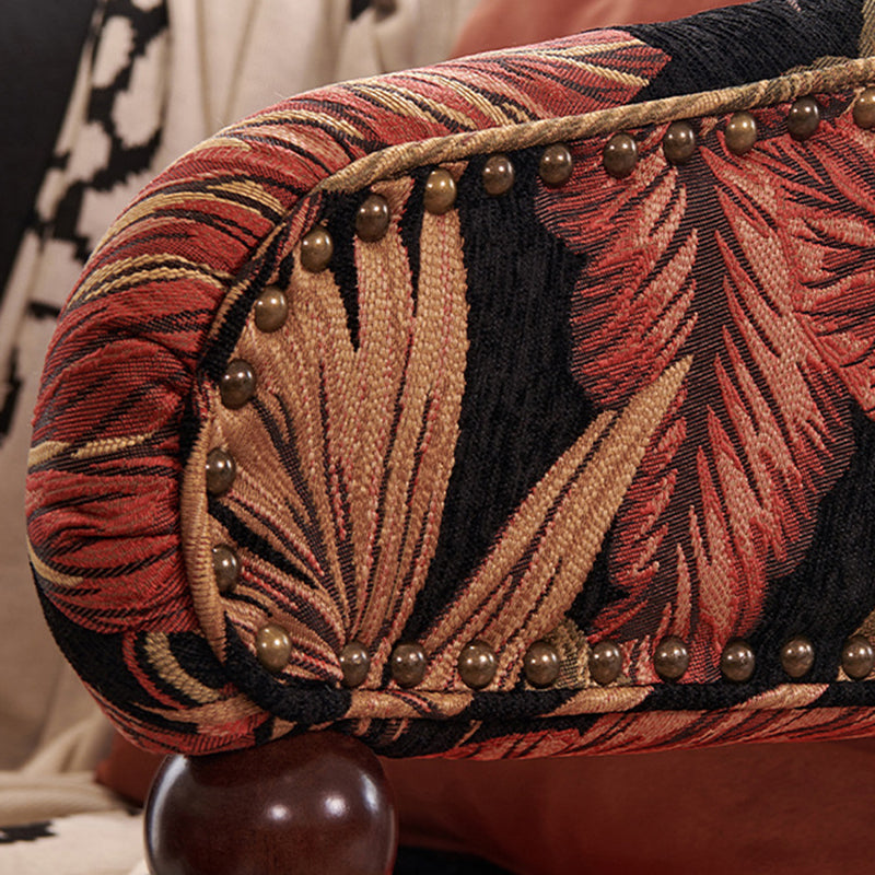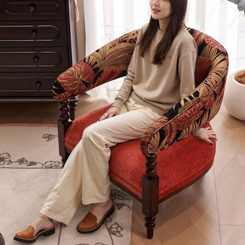 Traditional French Curved Velvet Upholstered Solid Wood Accent Chair Backrest Armrest For Living Room