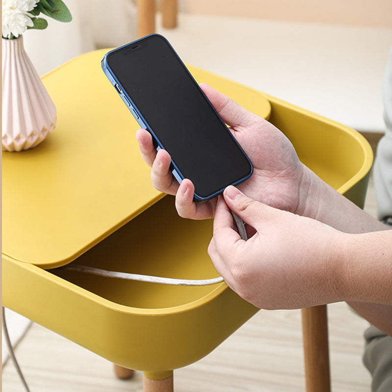 Modern Minimalist Square PP Beech Wood Removable End Table 1-Cabinet For Living Room