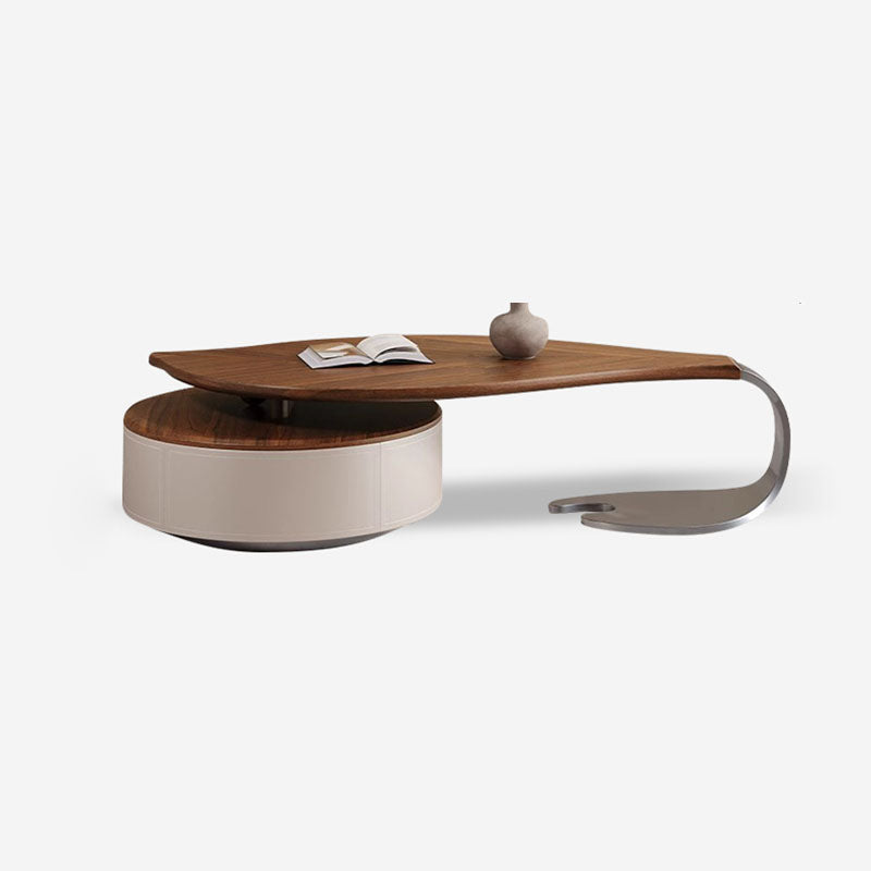 Modern Minimalist Leaf Design Stainless Steel Solid Wood Plywood Particleboard Coffee Table 1-Drawer 2-Tier For Living Room