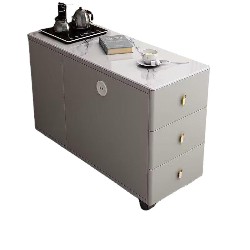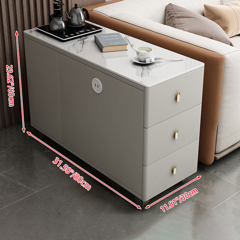 This modern Nordic side table features a sintered stone tabletop and engineered wood structure, designed with a rectangular movable form and three smooth-glide drawers for organized storage. Finished in cream white, walnut, or smoky gray, it combines silent sliding hardware with a sleek, space-saving design—ideal for elevating any contemporary living room setting.