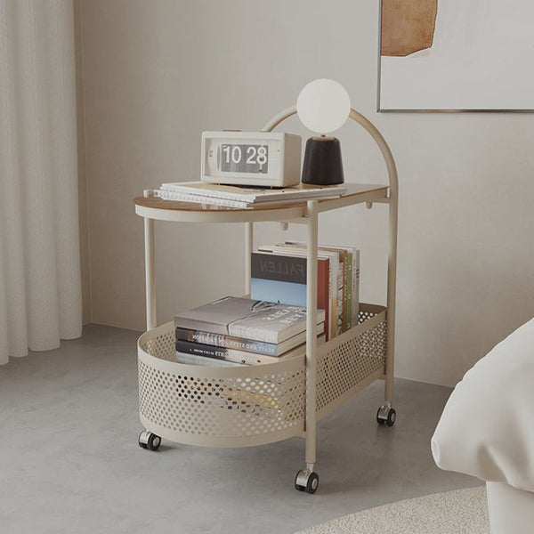 طاولة جانبية مستديرة بسيطة معاصرة بسطح زجاجي مع سلة تخزين من الحديد بطابقين لغرفة المعيشة