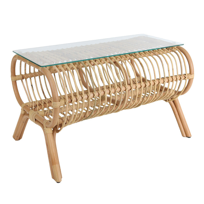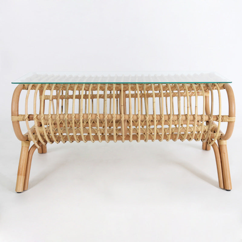 هذه الطاولة اليابانية الطراز مصنوعة من الخيزران الطبيعي مع هيكل مفتوح محاك يدوياً، وتتميز بملف منخفض وممدود يعكس الأناقة المتزنة للأثاث الياباني التقليدي. يتم إقران القاعدة الهوائية من الخيزران بسطح زجاجي شفاف، مما يخلق تبايناً راقياً بين الملمس الطبيعي والبساطة الحديثة. خفيفة في المظهر لكنها مستقرة في الهيكل، تضفي هذه الطاولة إحساساً بالتوازن الهادئ على مساحات المعيشة اليومية.