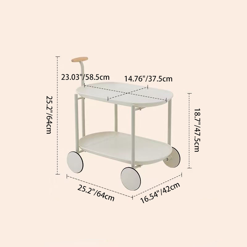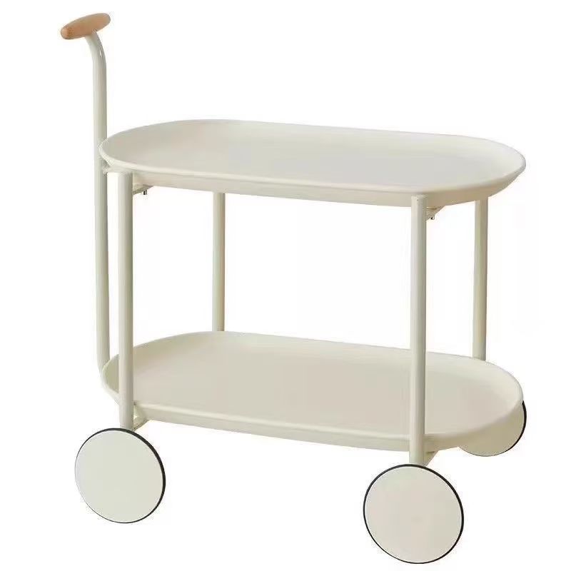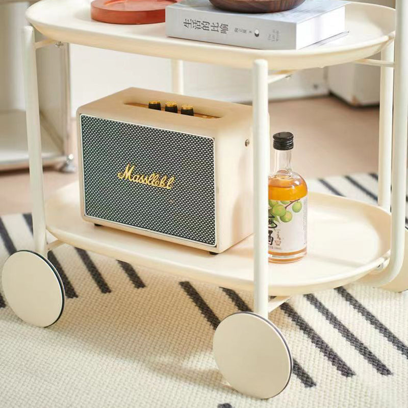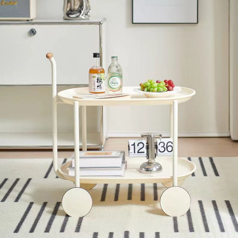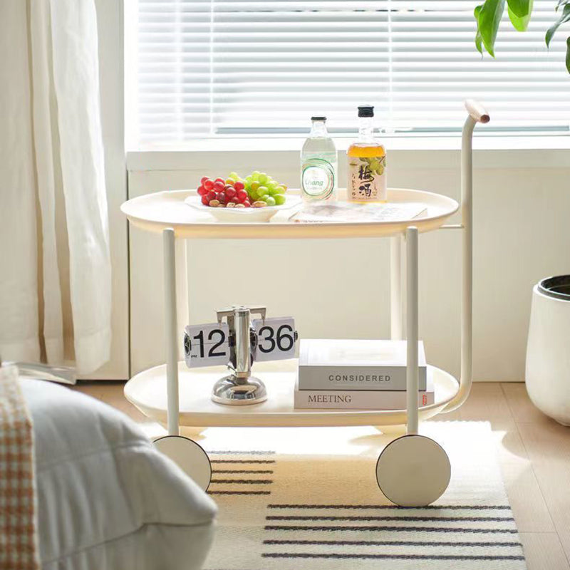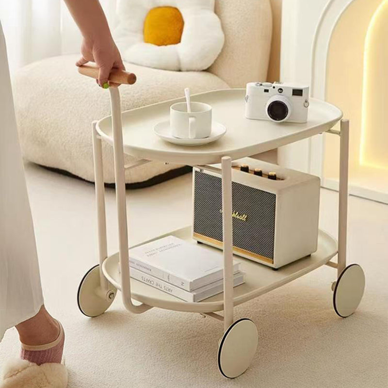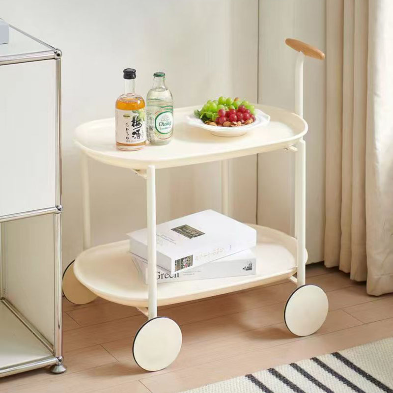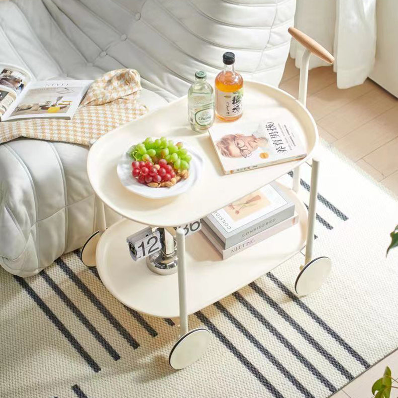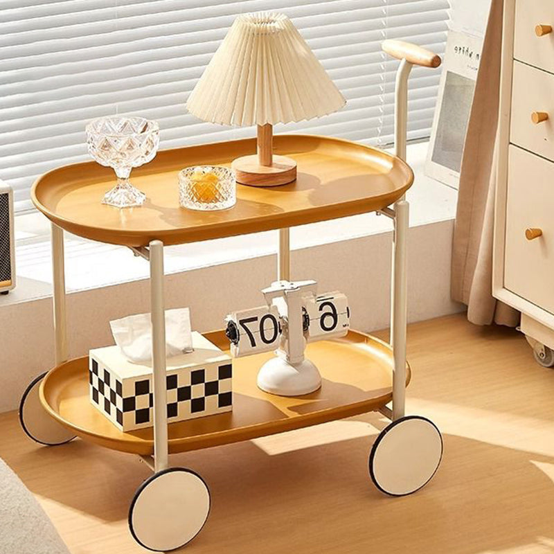 Contemporary Creative Cart-Shaped ABS Carbon Steel Solid Wood Mobile Side Table 2-Tier For Living Room