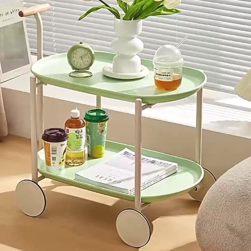 Add a touch of whimsical charm to your home with this contemporary creative side table, featuring a unique cart-style design with two functional tiers. Crafted from a premium blend of ABS, carbon steel, and solid wood, this piece ensures exceptional strength and stability. Beyond its playful look, the table is built for modern living with rounded safety corners, eco-friendly materials, and a strong load-bearing capacity. Its smooth mobility makes it an ideal solution for small living spaces, allowing you to move it wherever needed. Available in white, matcha green, and yellow, it is the perfect companion for living rooms, bedrooms, and sofa-side storage.