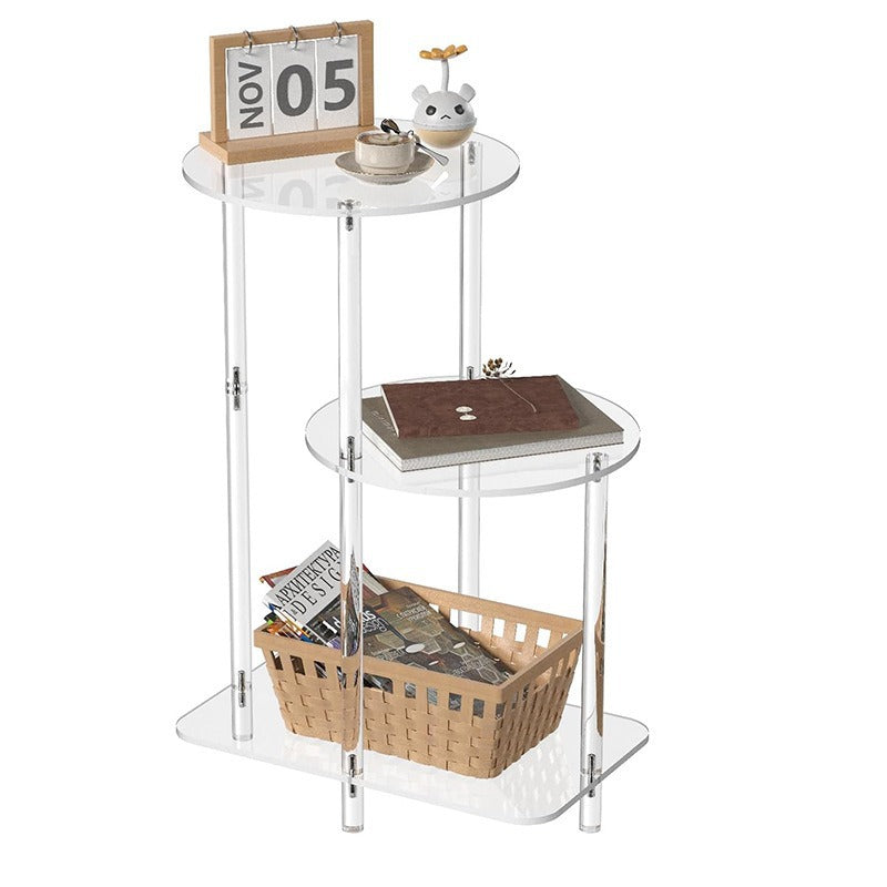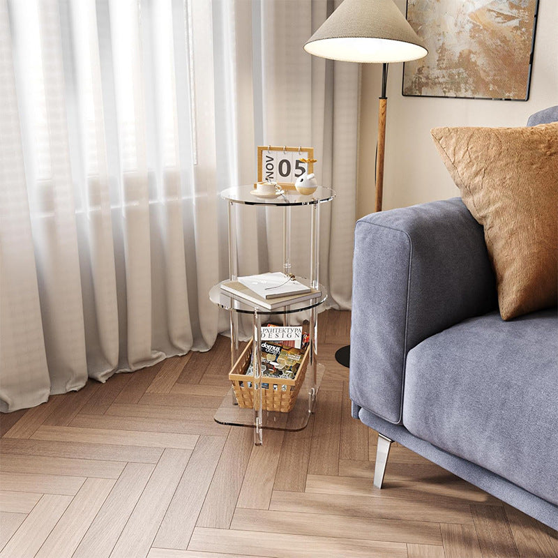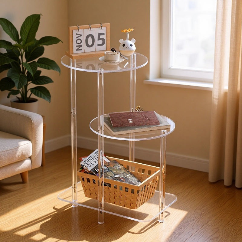 This modern minimalist nightstand redefines bedside elegance with its transparent cylindrical design. Crafted from durable, high-load acrylic, the practical 3-tier structure maximizes vertical storage without visual clutter. Featuring smooth rounded edges for a refined finish and enhanced safety, this stable and impact-resistant piece serves as both a contemporary bedside table and a stunning decorative accent for any high-end interior.