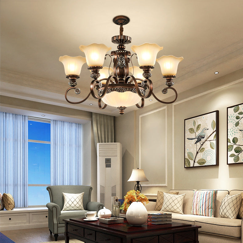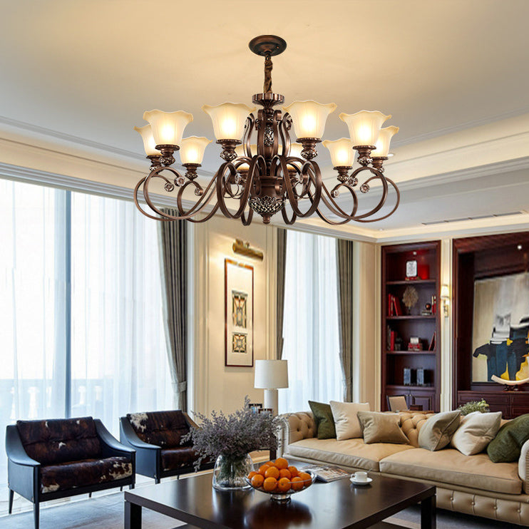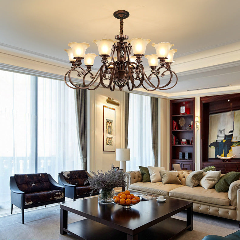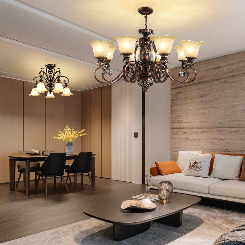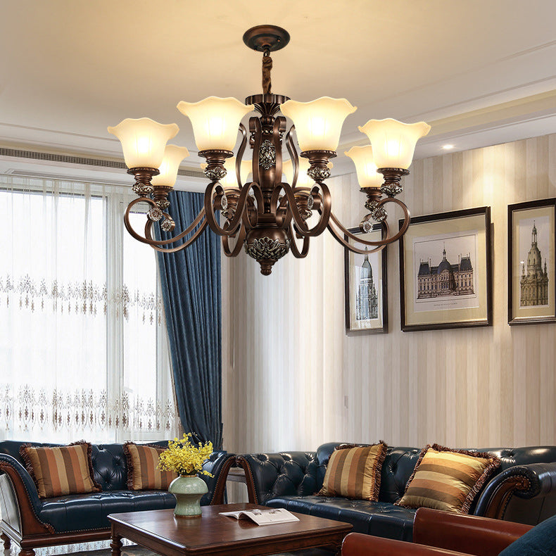 ثريا زهرية تقليدية عتيقة مستديرة من الراتنج والحديد والزجاج ب 3/6/8 أضواء لغرفة المعيشة