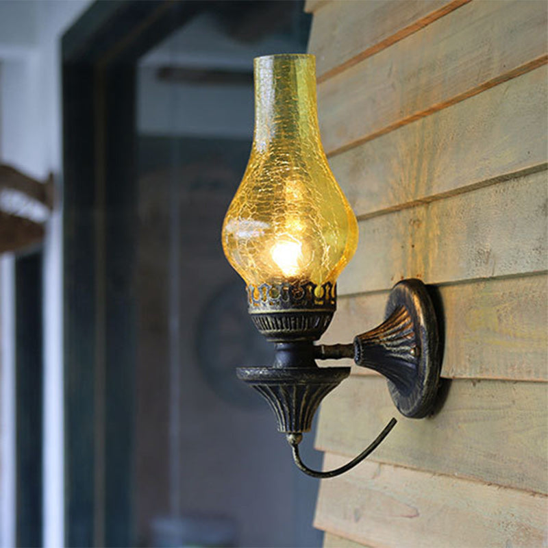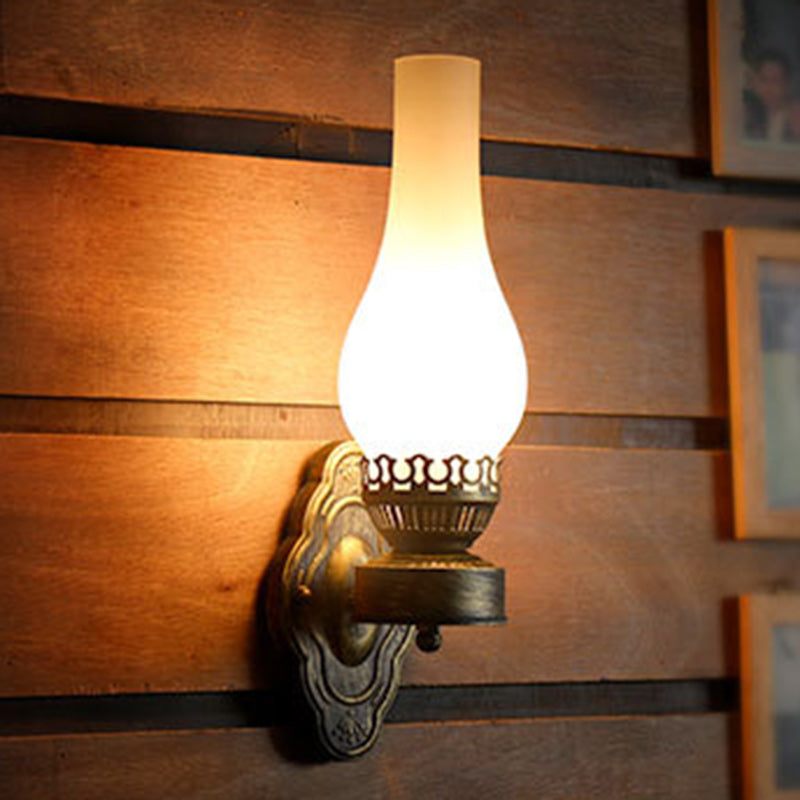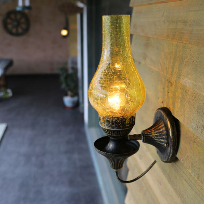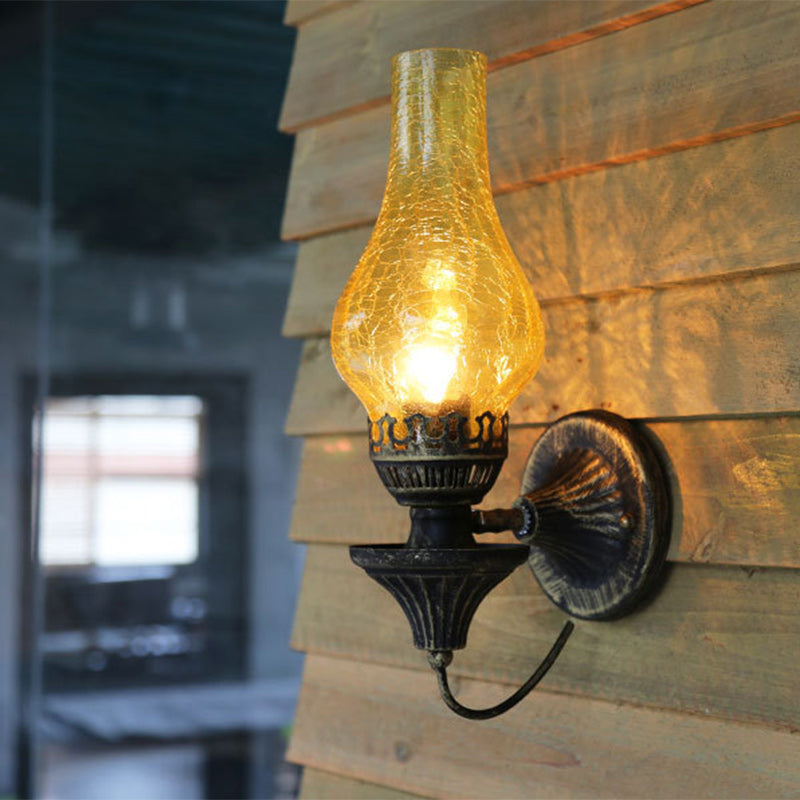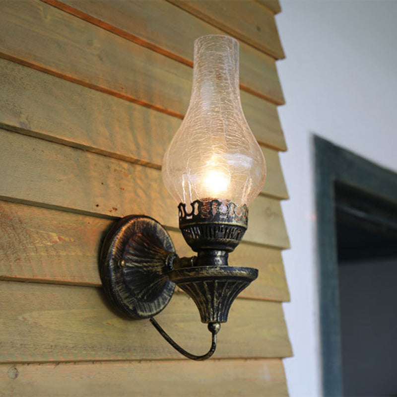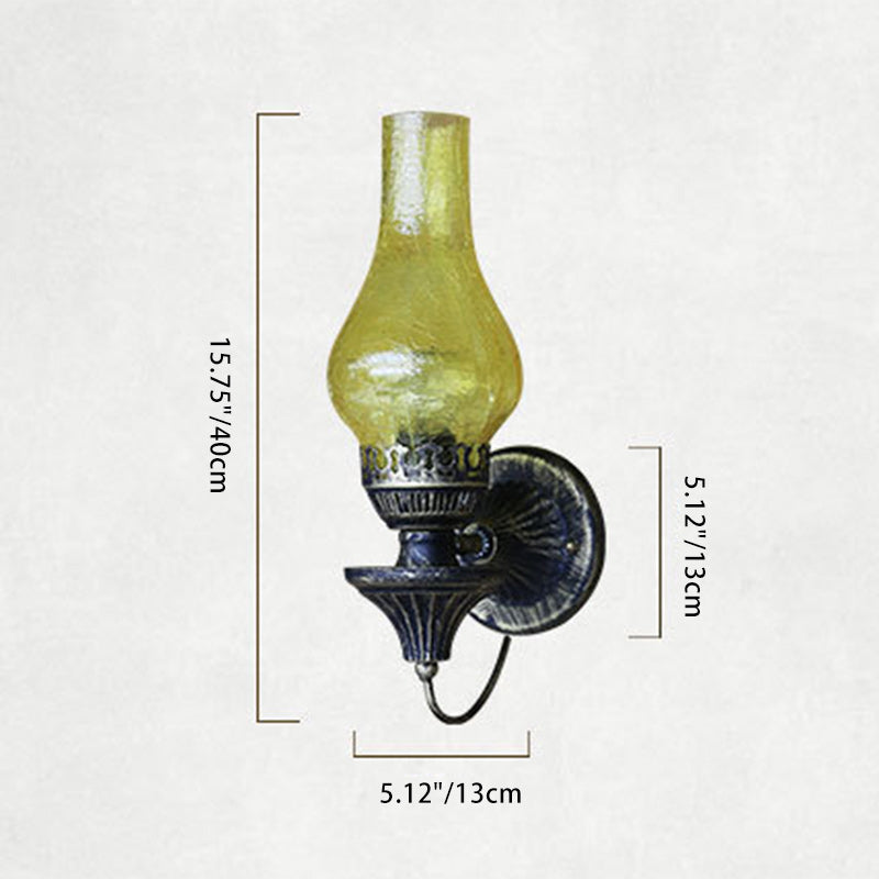 مصباح حائط تقليدي عتيق الشكل مستدير الكرة أسطوانة زجاج حديد 1-ضوء لغرفة المعيشة