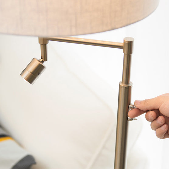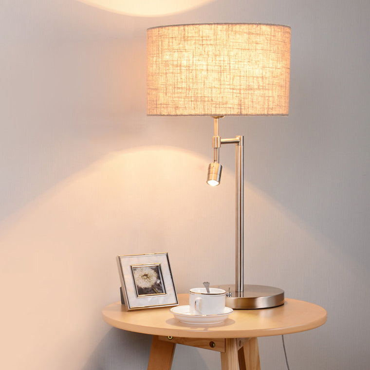 مصباح طاولة دوار بسطوع أسطواني تقليدي عتيق من القماش ذو ضوءين للمنزل والمكتب