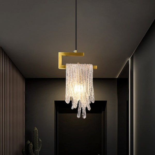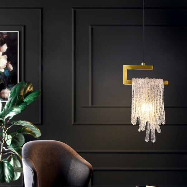 تصميم الإضاءة المعلقة بتقليد الجليد الإبداعي المعاصر مع شرابات زجاجية وإطار نحاسي بضوء واحد لغرفة المعيشة
