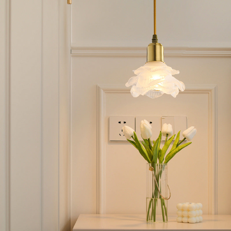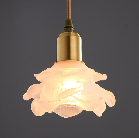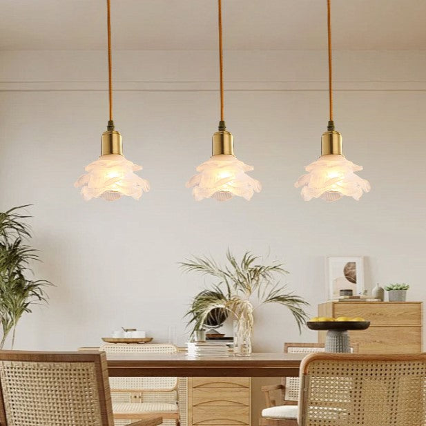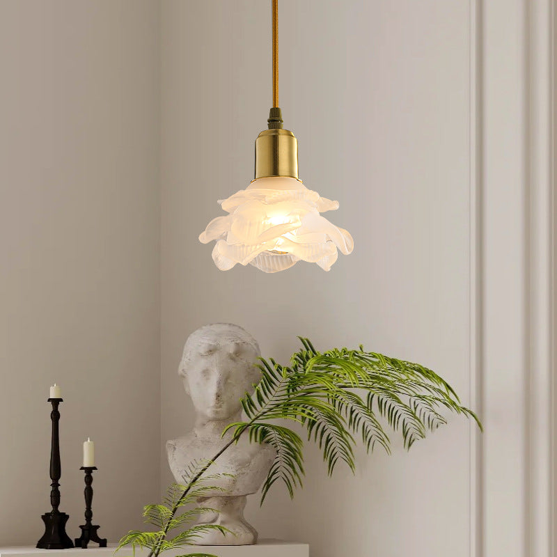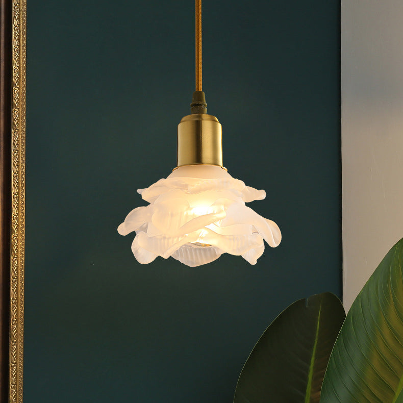 ضوء قلادة بزهرة حديثة بسيطة مع إطار نحاسي كامل وظل زجاجي بضوء واحد لغرفة المعيشة