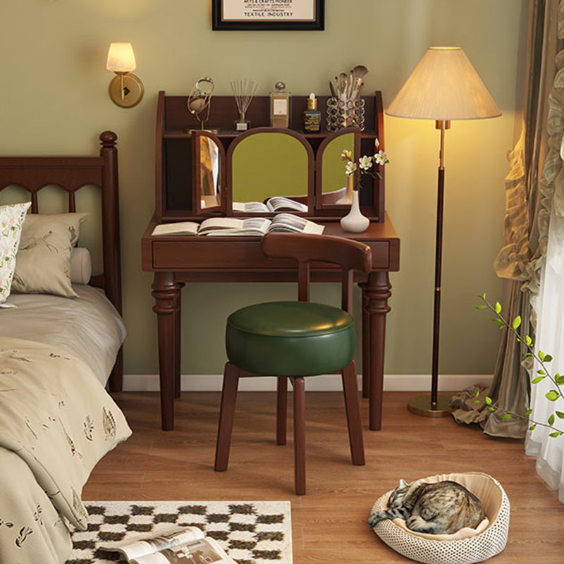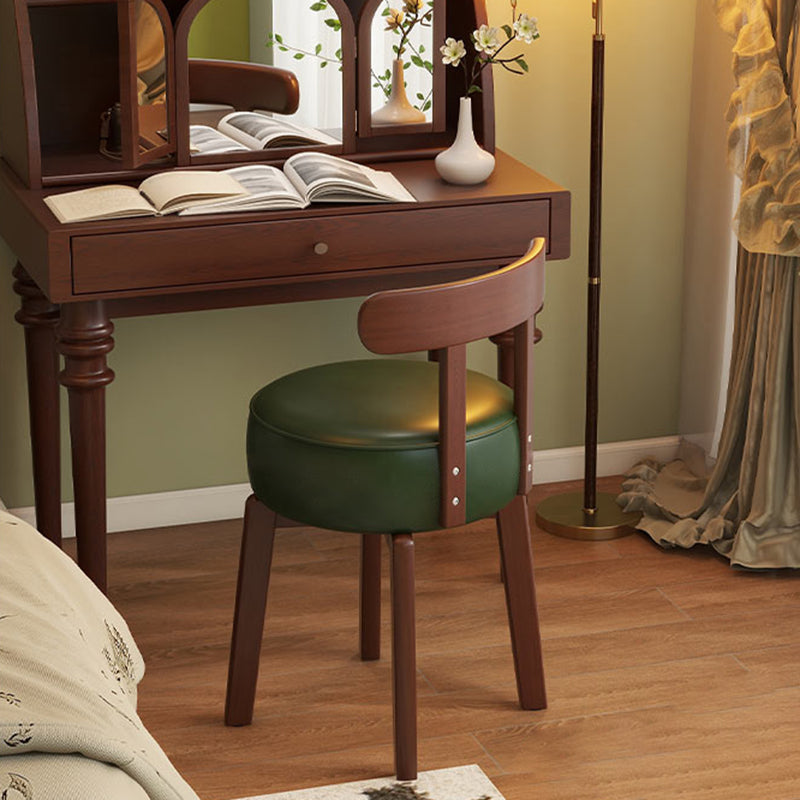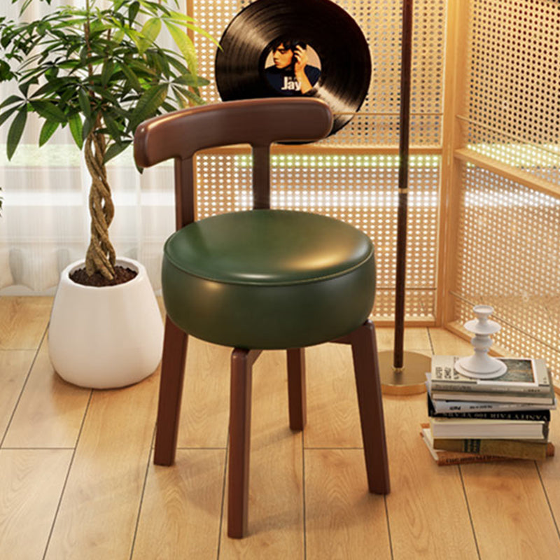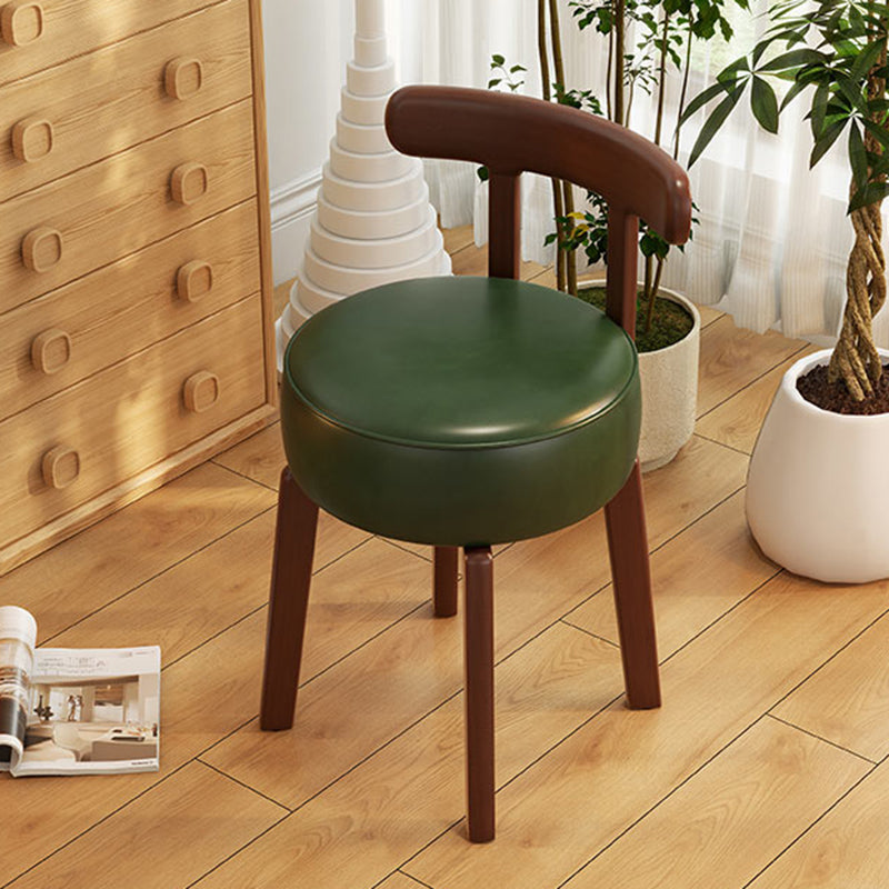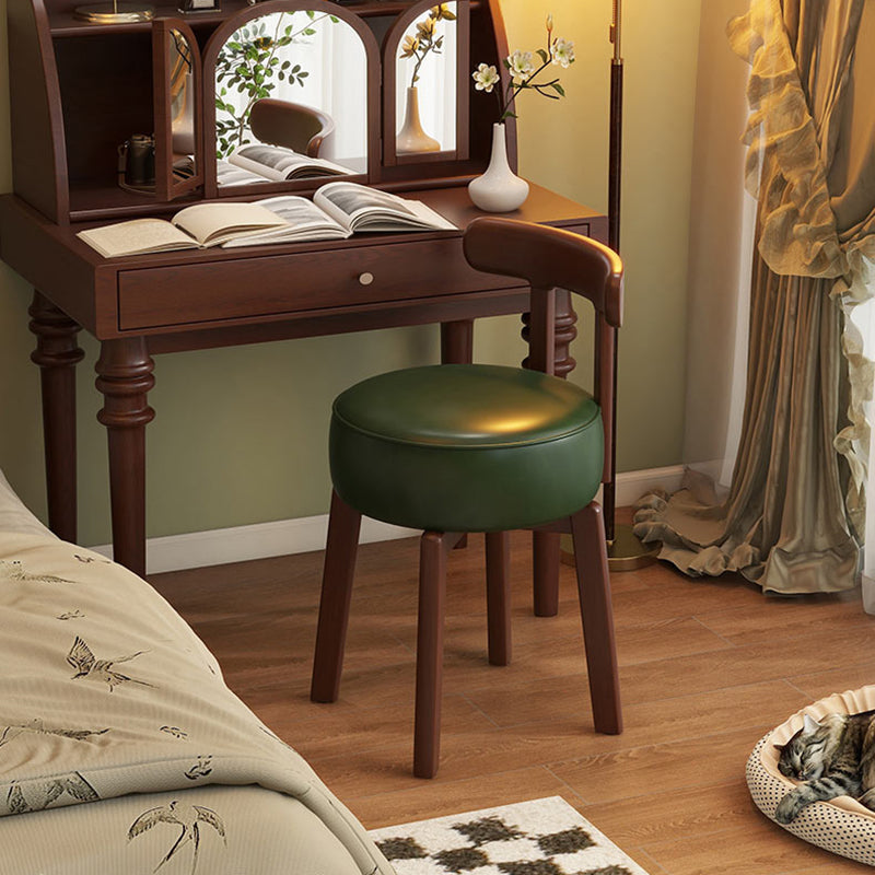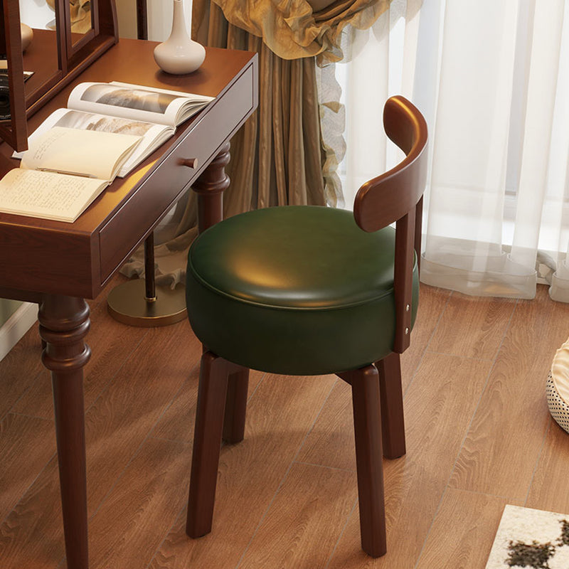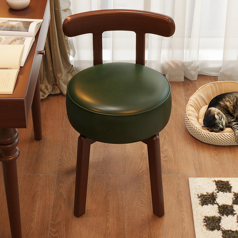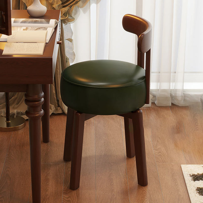 Contemporary Retro Round Oil Wax Leather Rubberwood 360°Swivel Vanity Stool Backrest Armless For Bedroom