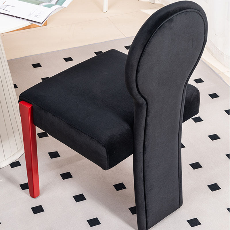 This Contemporary Scandinavian vanity chair features a velvet seat, rubberwood frame, and a square–curved silhouette that brings comfort and style to any bedroom. With its supportive backrest, thick cushioned seat, and color options in black, red, and orange, this chair offers soft rebound, long-lasting shape retention, and a refined modern look perfect for makeup spaces or small reading corners.