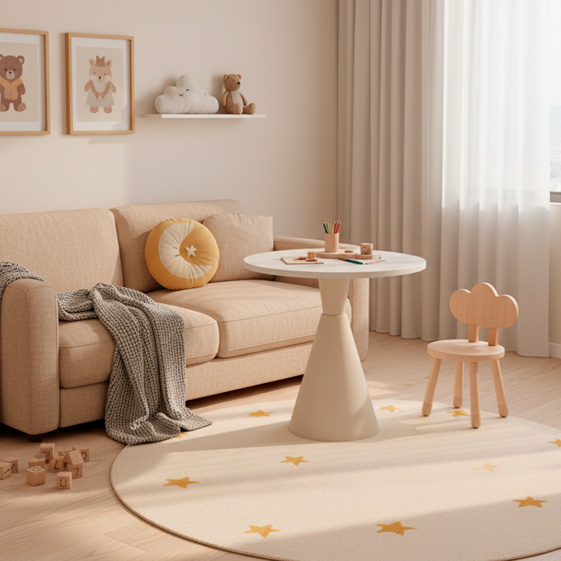 Contemporary Scandinavian Sintered Stone Solid Wood Iron Velvet Sponge Round Accent Chair & Table Set For Living Room