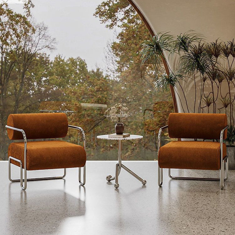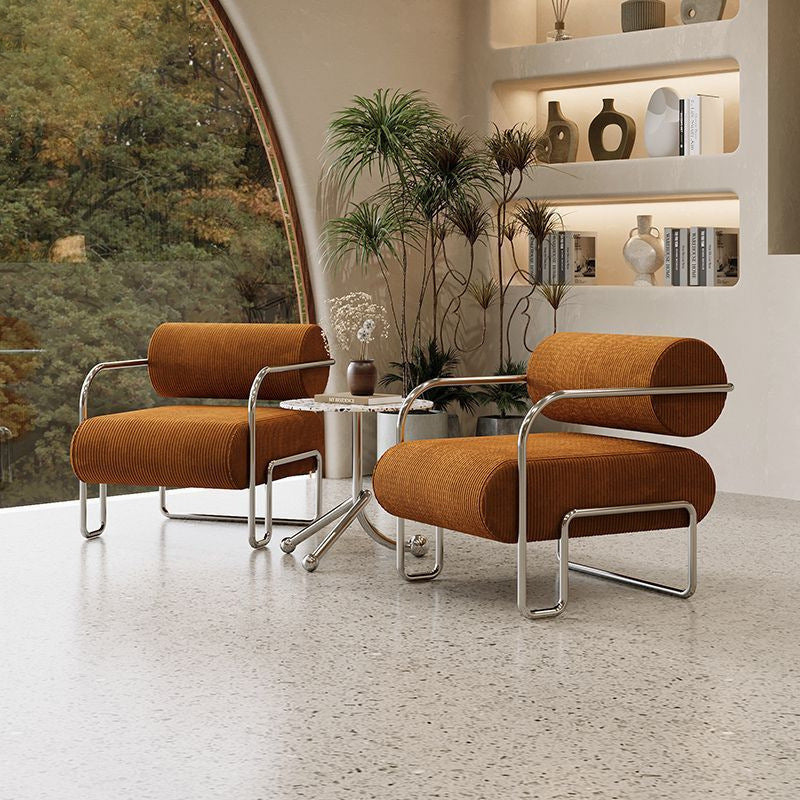This traditional French accent chair blends corduroy, suede, and stainless steel with a cylindrical square silhouette for timeless elegance. Featuring a supportive backrest, armrests, and high-resilience foam padding, it offers comfort in yellow, green, blue, and white �ideal for coffee corners, living rooms, or balcony seating.