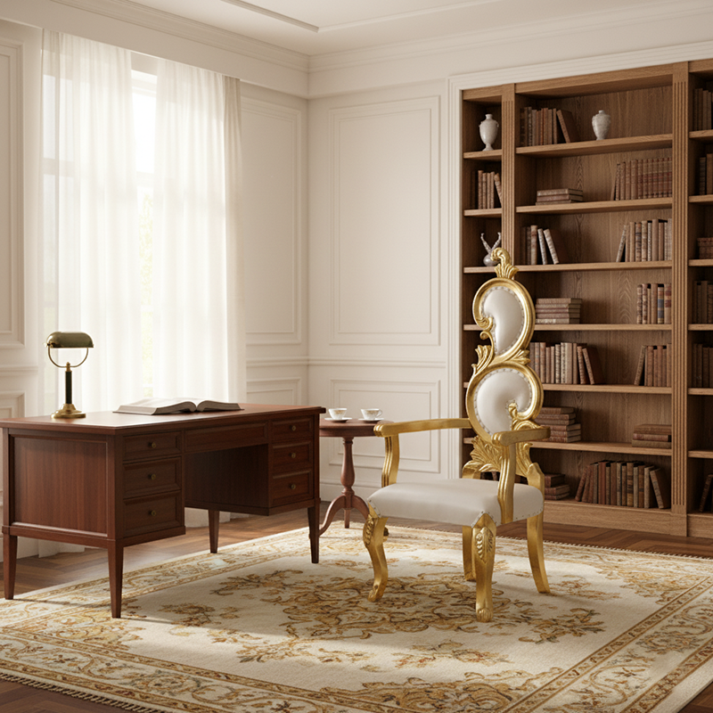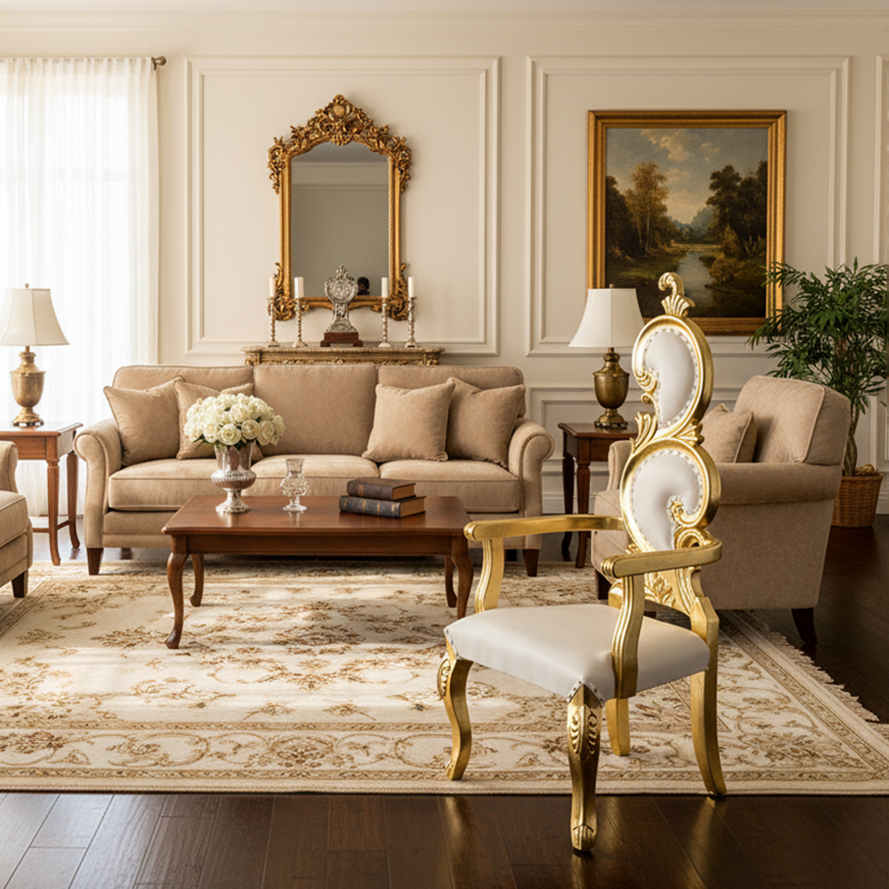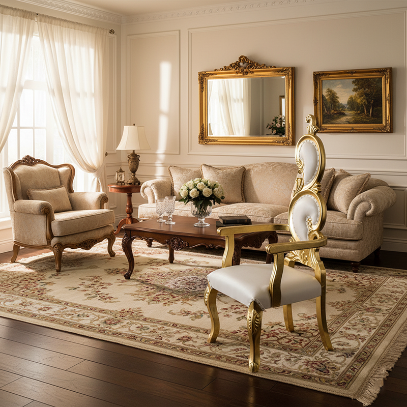 Traditional French Rectangular Petal-Shaped PU Leather Solid Wood Accent Chair Backrest Armrest For Living Room
