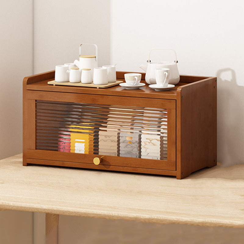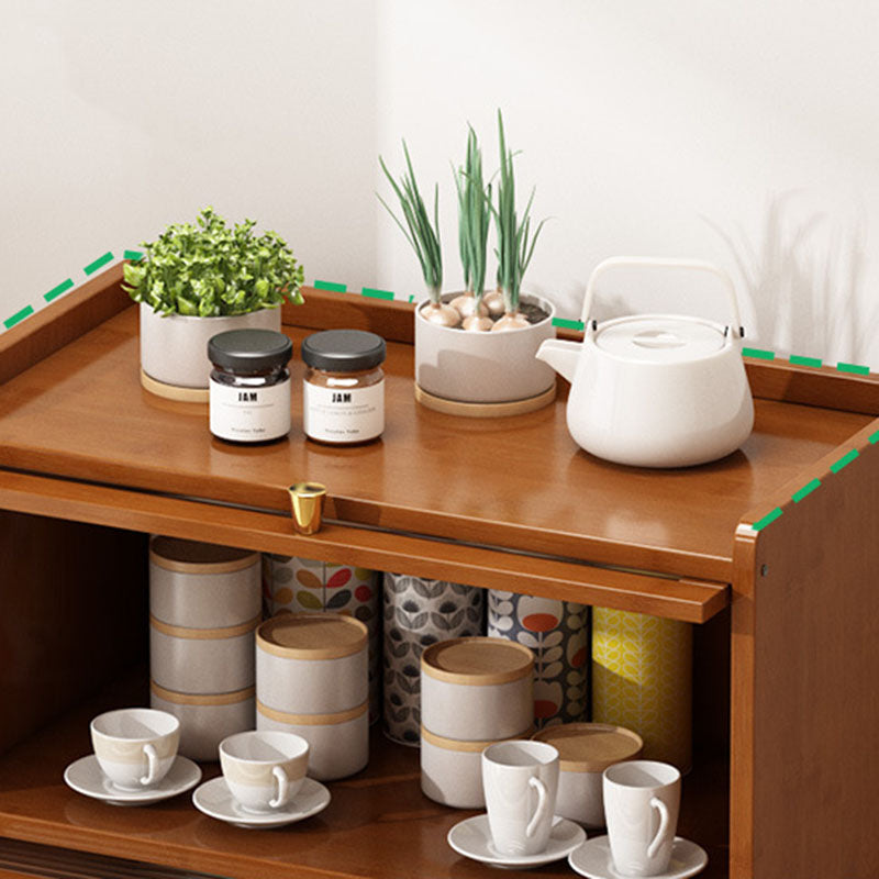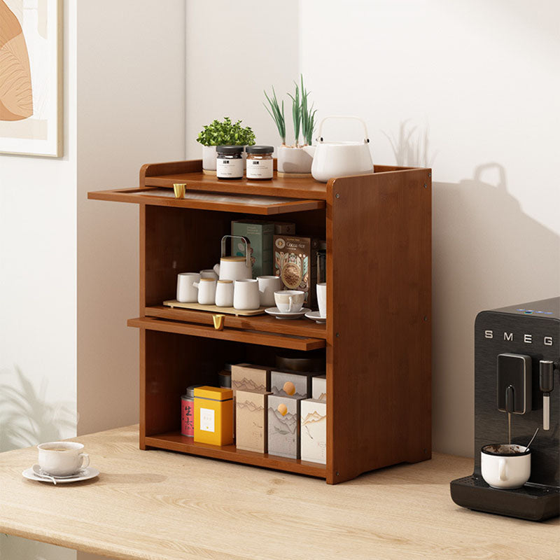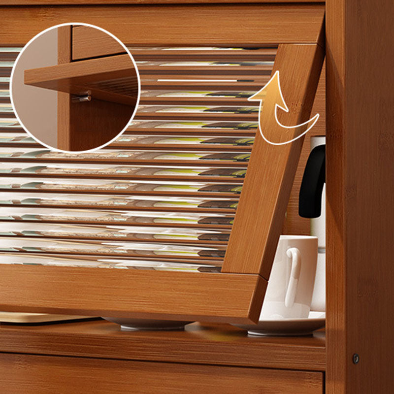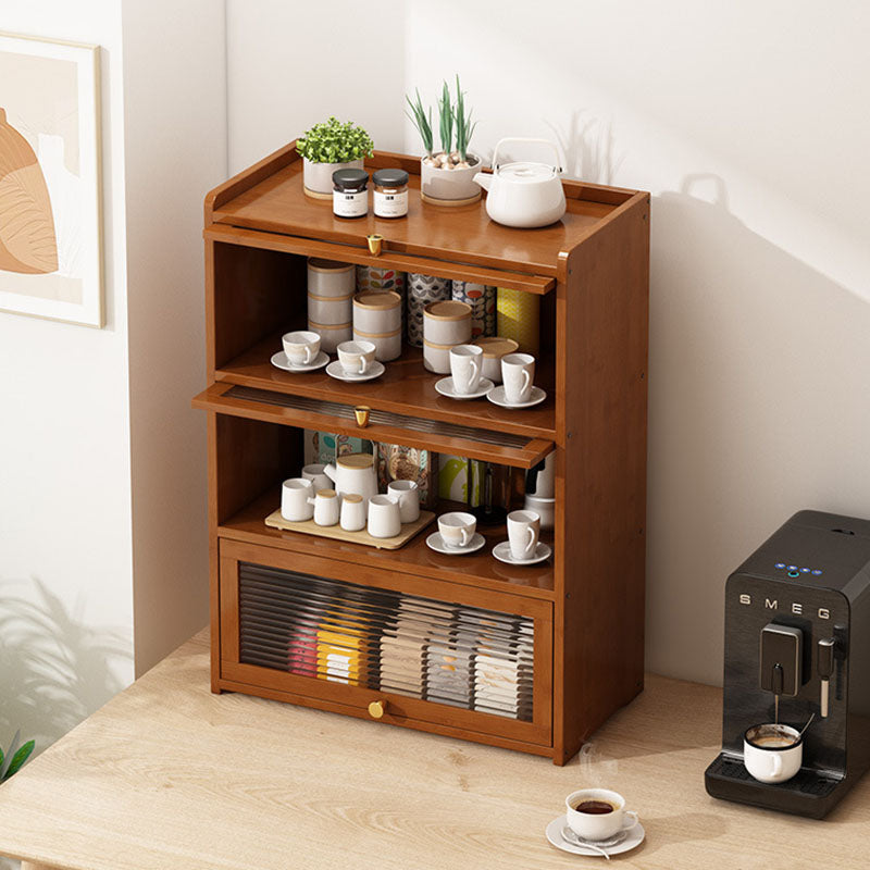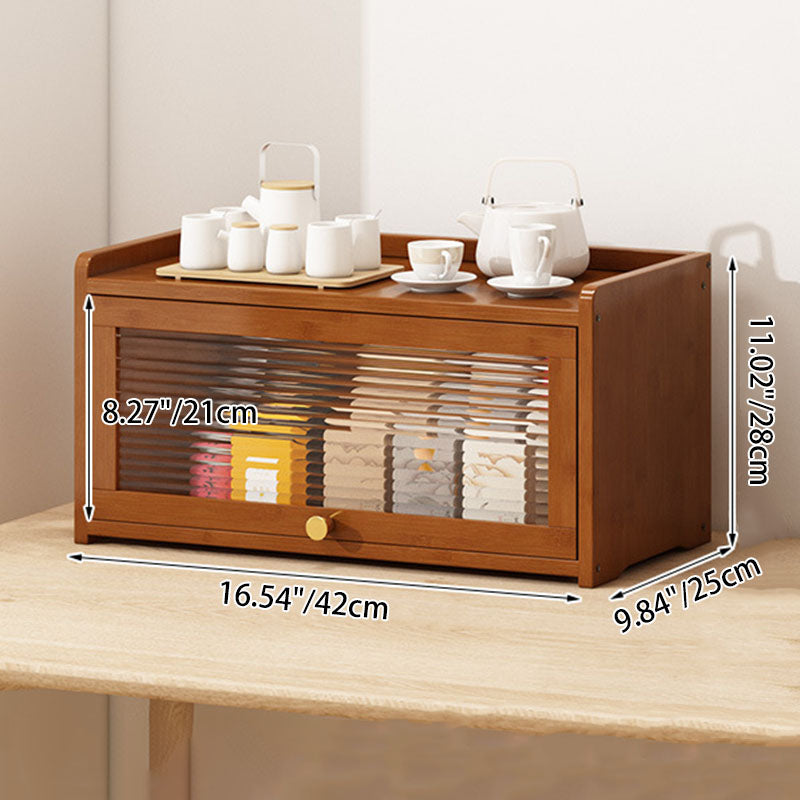 This traditional Chinese-style storage cabinet features a bamboo frame combined with acrylic panels, available in 2, 3, or 4-tier designs. Finished in elegant tea color, it includes a protective railing to prevent items from falling and a flip-top cover for dust prevention, making it ideal for organizing tea sets, cups, and kitchenware in the living room.