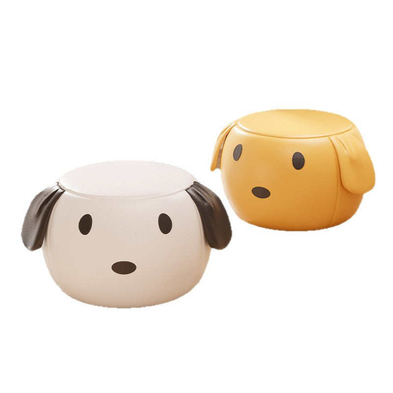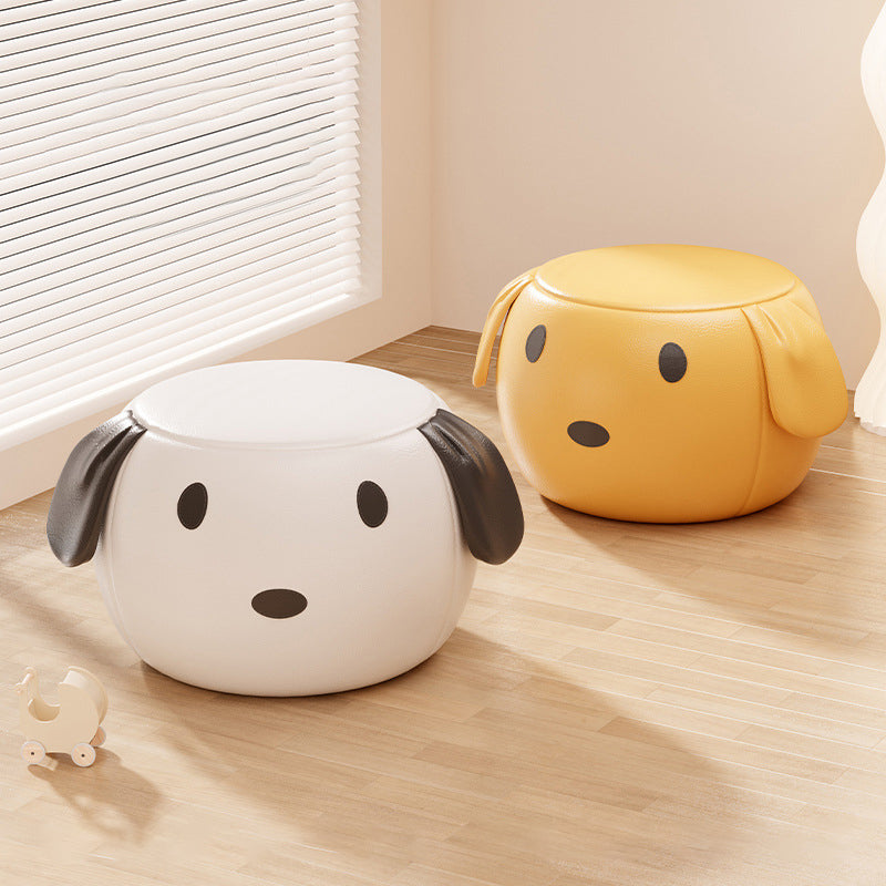 Modern Minimalist Round PU Leather Solid Wood Multi-layer Board Solid Wood Sponge Footstool For Living Room
