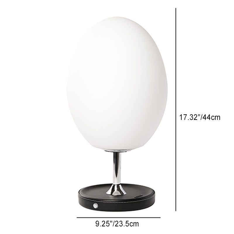 مصباح طاولة LED على شكل بيضة معدني بقاعدة من الجلد وظل زجاجي لغرفة النوم بتصميم حديث وبسيط