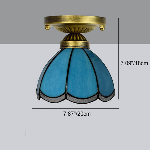 ضوء سقف شبه متدلي بقاعدة واحدة من قبة زجاجية ملونة على الطراز المتوسطي من تيفاني