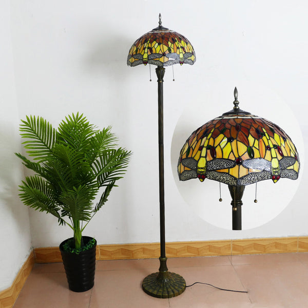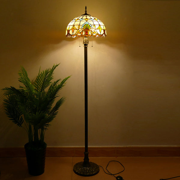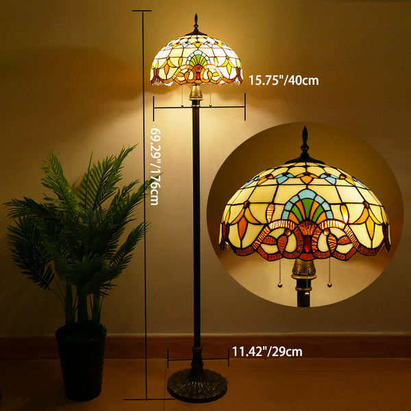 مصباح أرضي تقليدي من الحديد والزجاج بثلاثة أضواء من تيفاني لغرفة المعيشة
