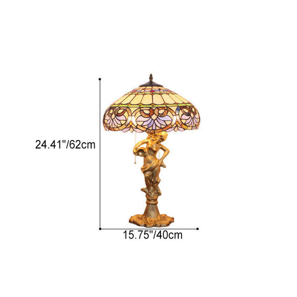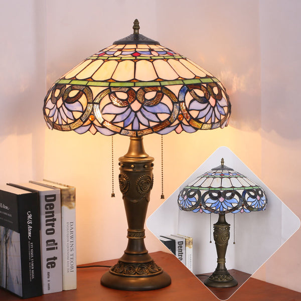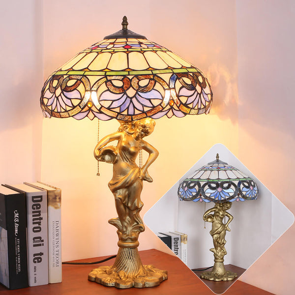 مصباح طاولة زجاجي ملون على شكل قلب خوخي باروكي من تيفاني عتيق ب2/3 أضواء