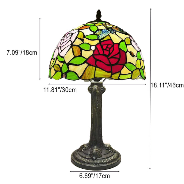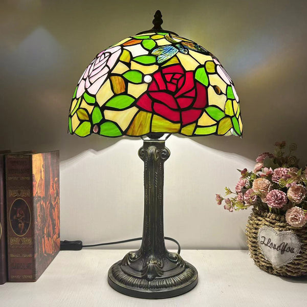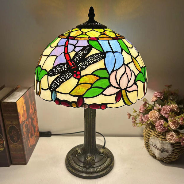مصباح طاولة زجاجي من الحديد بتصميم قبة تيفاني تقليدية مع زهرة وضوء واحد لغرفة المعيشة