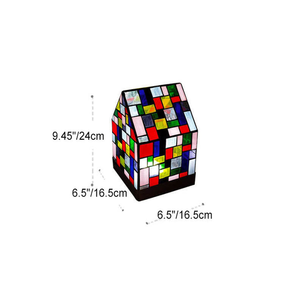 مصباح طاولة LED بقاعدة حديدية على شكل كابينة زجاجية متألقة من تيفاني