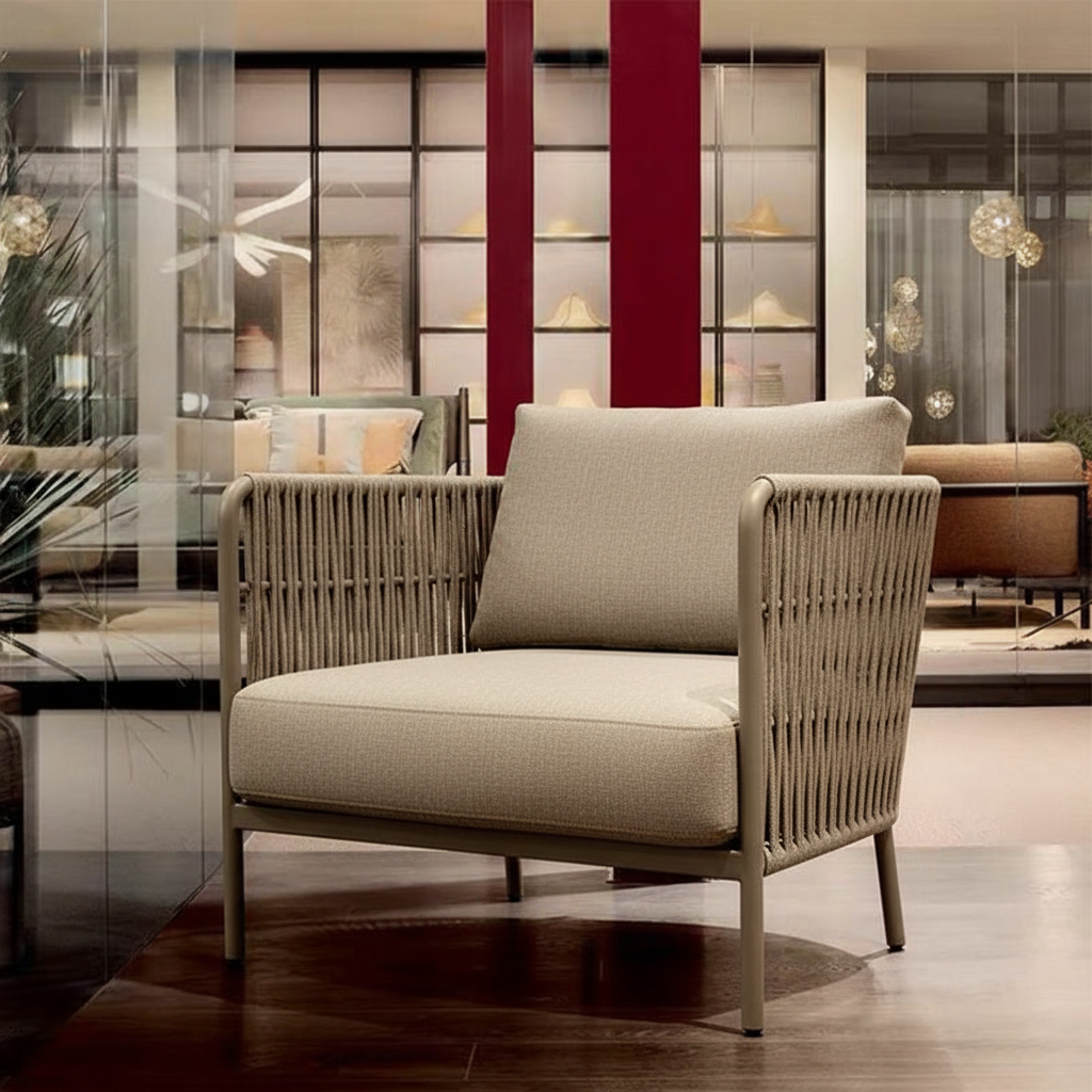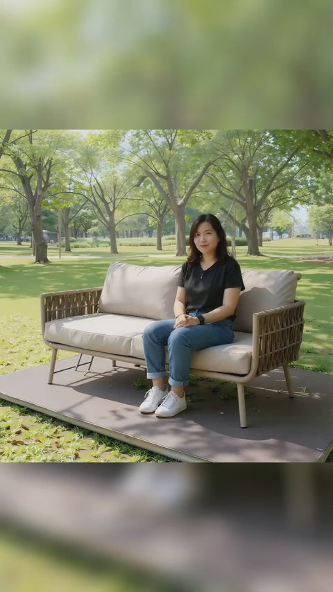 This outdoor sofa is inspired by contemporary coastal design, blending comfort and modern aesthetics to suit any outdoor space. It features a high-quality aluminum frame for excellent corrosion resistance, waterproofing, and durability. The high-density foam cushions provide superior comfort, while the polyester woven detailing adds a refined visual touch. Available in single, double, and triple-seat options, this sofa is perfect for balconies, gardens, or patios, elevating your outdoor leisure experience.