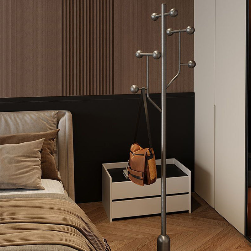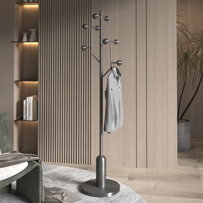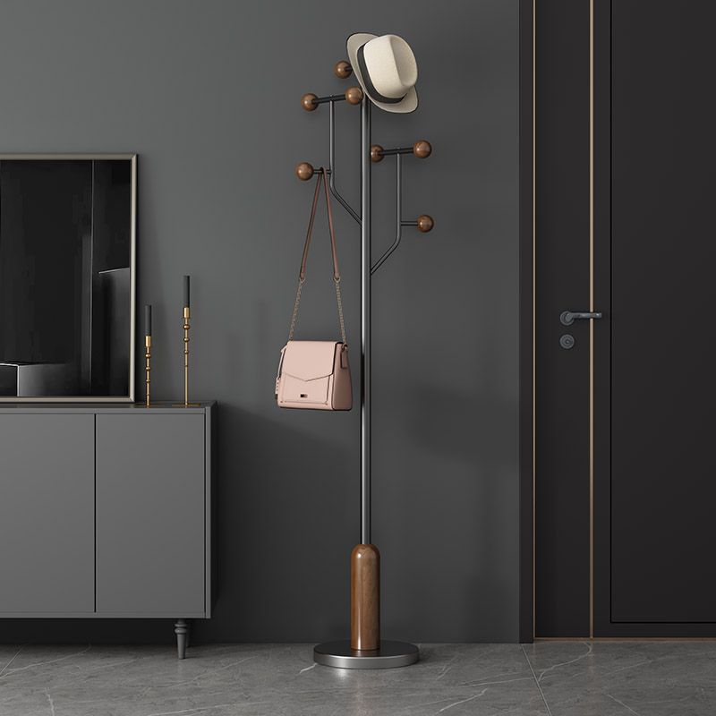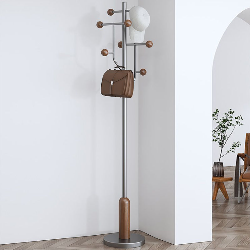 Elevate your organization with this modern minimalist floor coat rack, a masterclass in exceptional strength and stability. The design harmoniously combines solid rubberwood and stainless steel with a luxurious marble base, ensuring a wide, weighted foundation that prevents tipping. Its sleek cylindrical form, available in refined brown, gray, or silver, features high-capacity rounded hooks designed to protect garments while maintaining a space-saving profile perfect for upscale bedrooms and entryways.